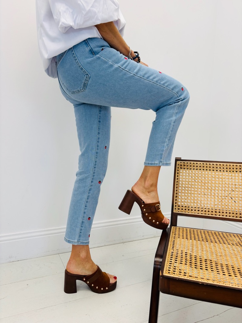 Jean Coupe Mom Fit à Motifs