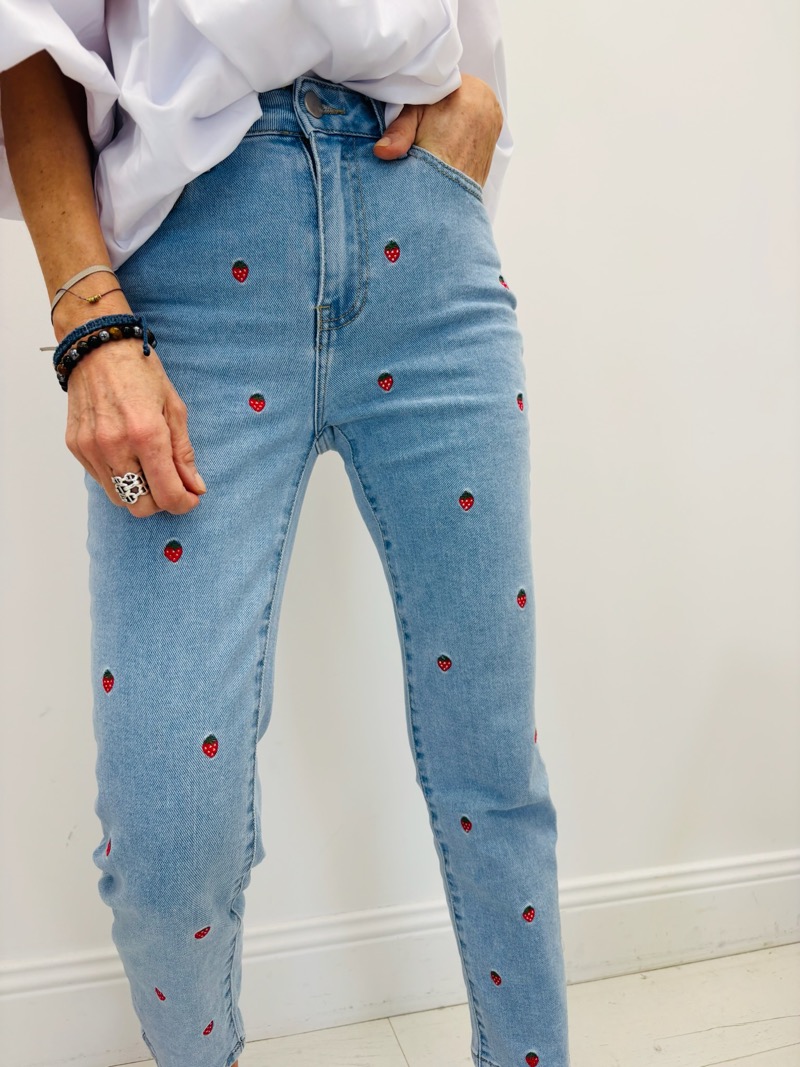 Ce jean coupe mom fit combine style et confort avec ses motifs distinctifs. Parfait pour une allure décontractée.