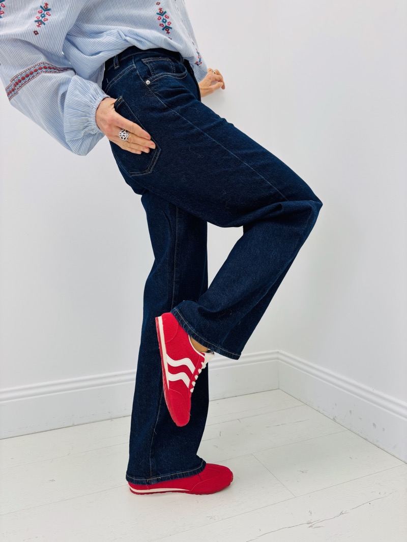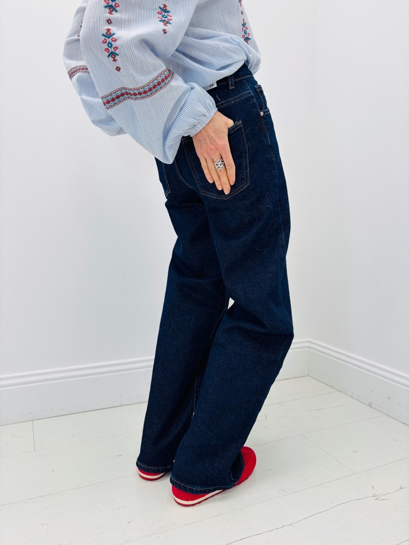 Sa taille haute met joliment en valeur la taille et allonge visuellement la jambe, offrant un rendu flatteur pour de nombreuses morphologies. La coupe wide leg assure une grande liberté de mouvement et un tombé élégant, sans rigidité. C’est un jean facile à porter au quotidien, tout en étant suffisamment fort pour devenir la pièce centrale d’un look.