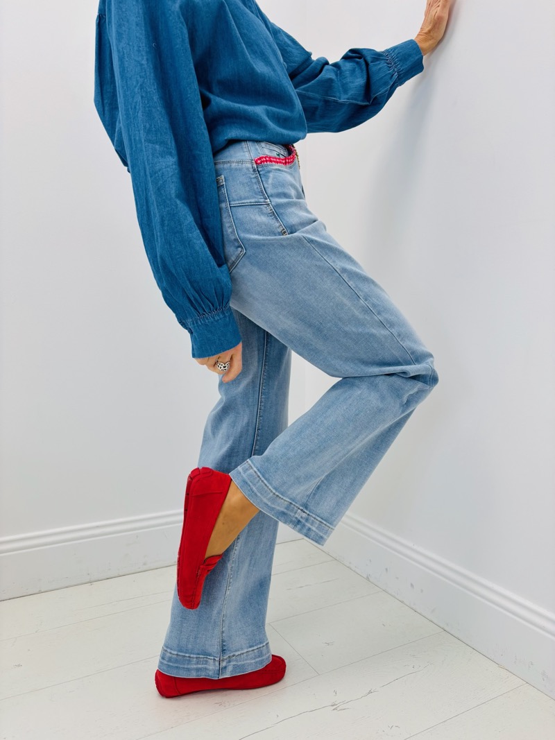 Confectionné dans un denim agréable à porter, il conserve une belle tenue sans rigidité excessive. Le bas de jambe large accentue l’effet mode et permet de le porter aussi bien avec des baskets qu’avec des chaussures plus habillées. Polyvalent et tendance, ce jean est parfait pour enrichir une collection avec un modèle fort, féminin et très actuel.