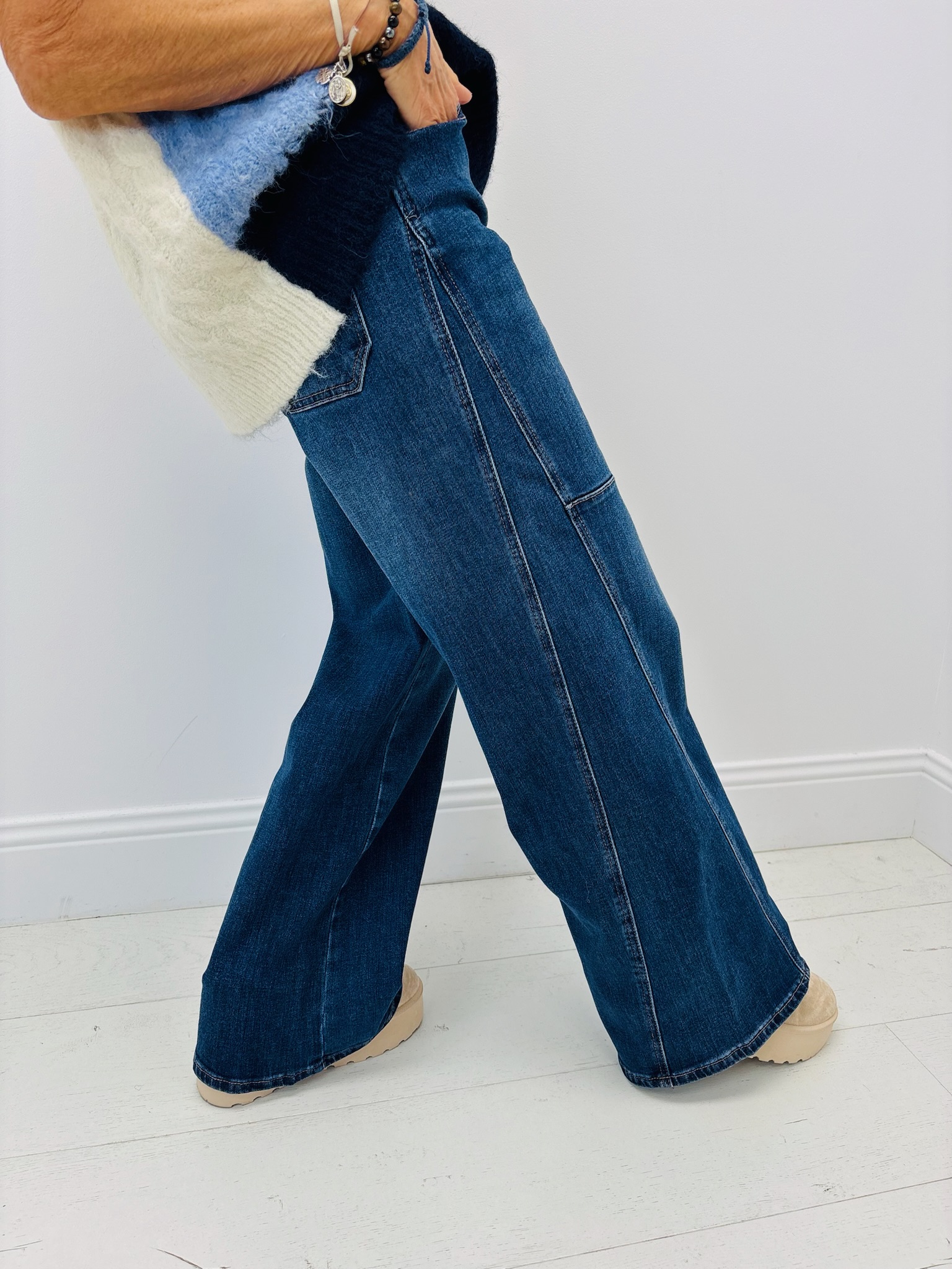 Un jean tendance à la coupe ample et structurée, parfait pour allonger la silhouette et offrir un look moderne. Sa taille haute met en valeur la taille, tandis que sa jambe large assure confort et allure décontractée. Fabriqué dans une toile denim souple et résistante, il se porte aussi bien avec des baskets que des bottines.