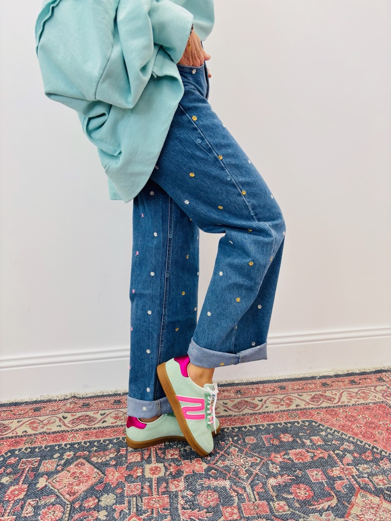 Porté avec un sweat oversize pour un look casual chic ou associé à une blouse féminine pour un contraste élégant, ce jean brodé apporte une touche fraîche et joyeuse à toutes les silhouettes. Une pièce coup de cœur, idéale pour dynamiser une vitrine ou enrichir une offre denim originale.