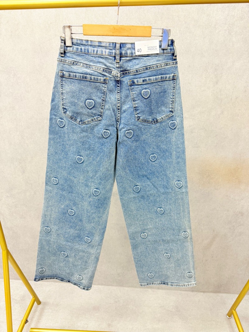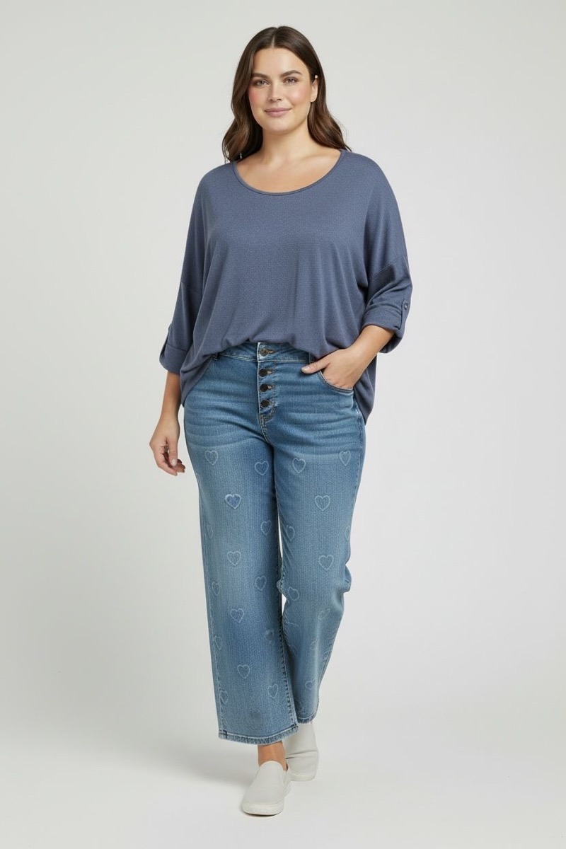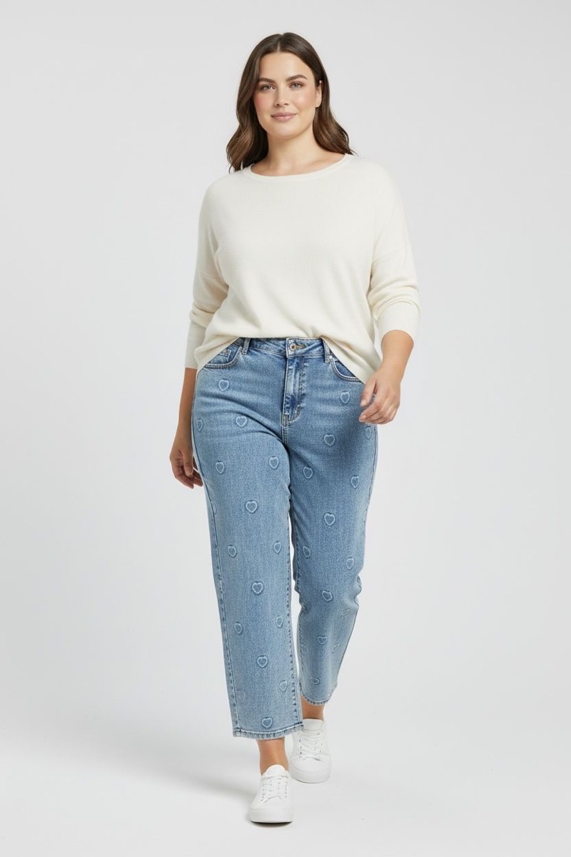Jean grande taille brodé cœurs – denim tendance et confort absolu