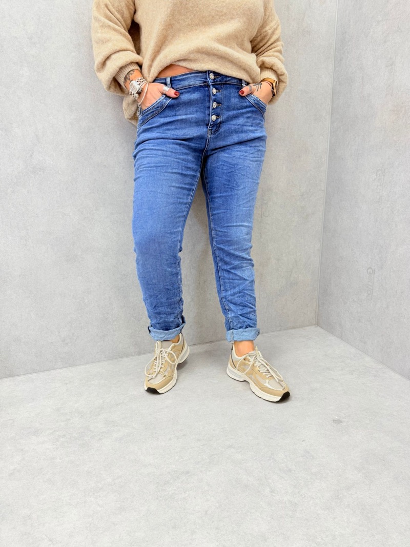 Jean grande taille taille haute à boutons – Denim stretch confortable et flatteur