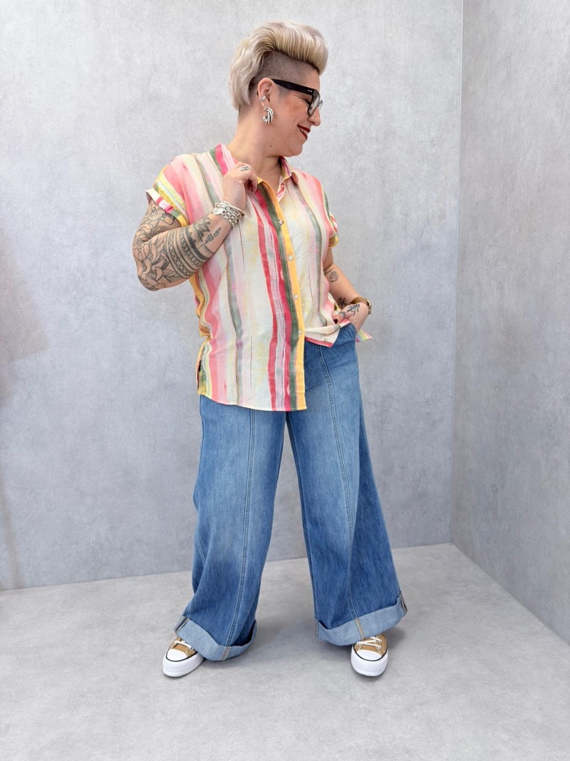 Confortable et facile à porter, ce jean grande taille s’intègre parfaitement dans une garde-robe moderne entre style bohème, casual et urbain. Une pièce forte qui séduira facilement en boutique grâce à sa coupe flatteuse et son détail mode.