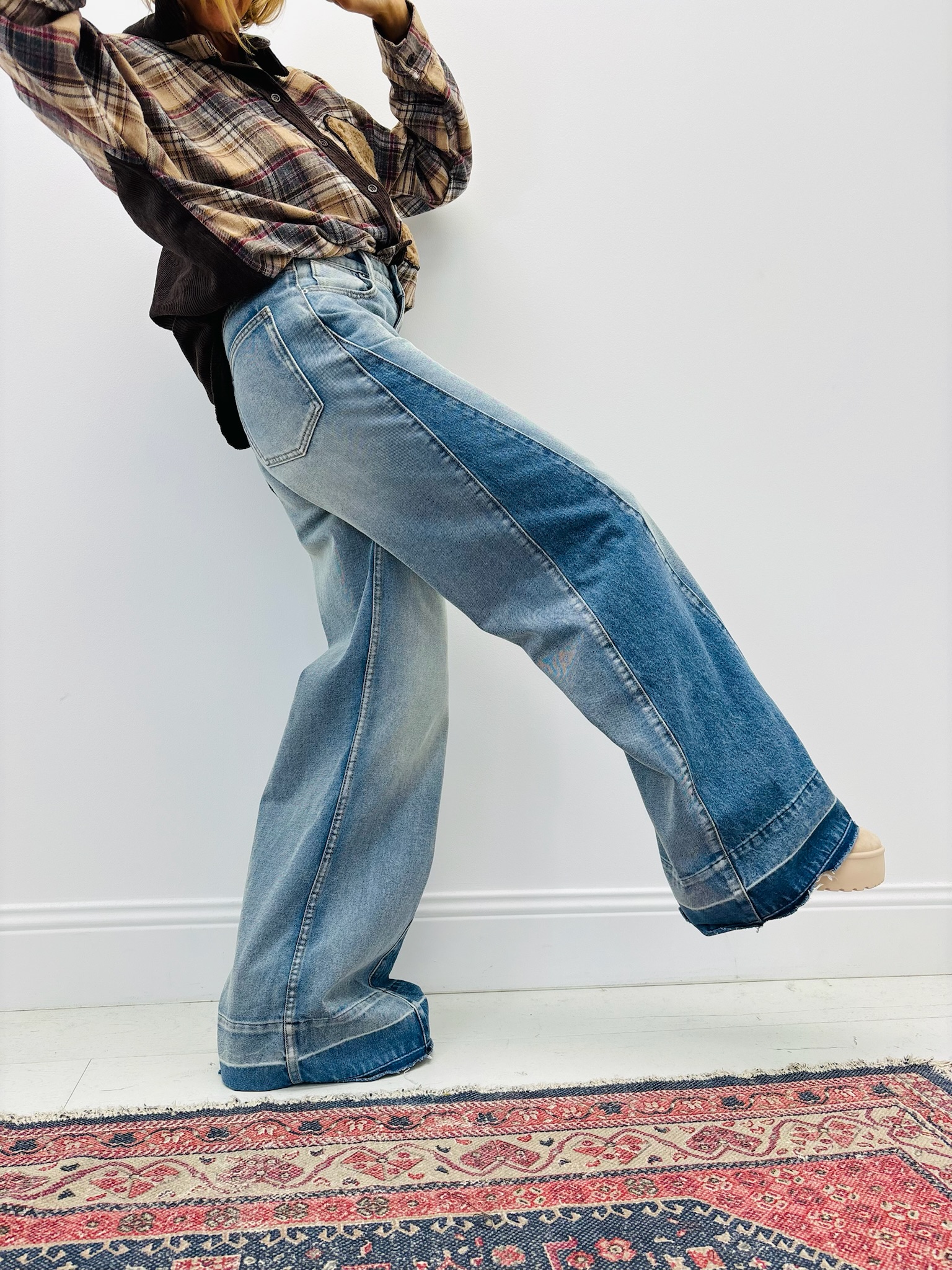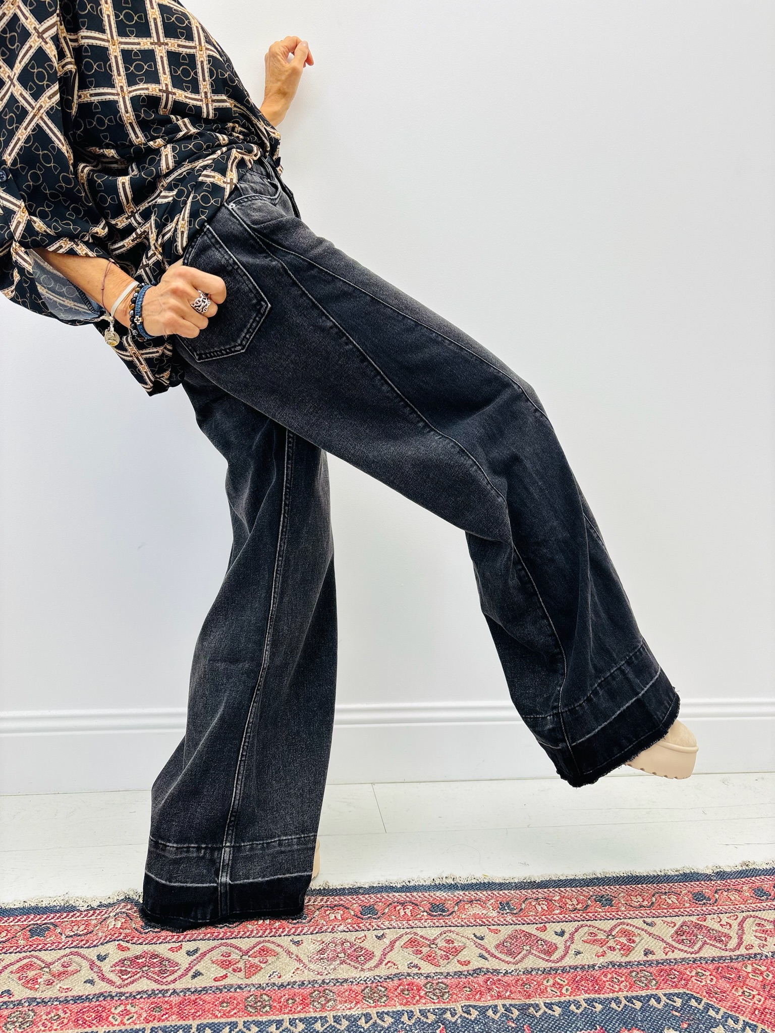Un jean au style rétro revisité pour une allure moderne et élancée.