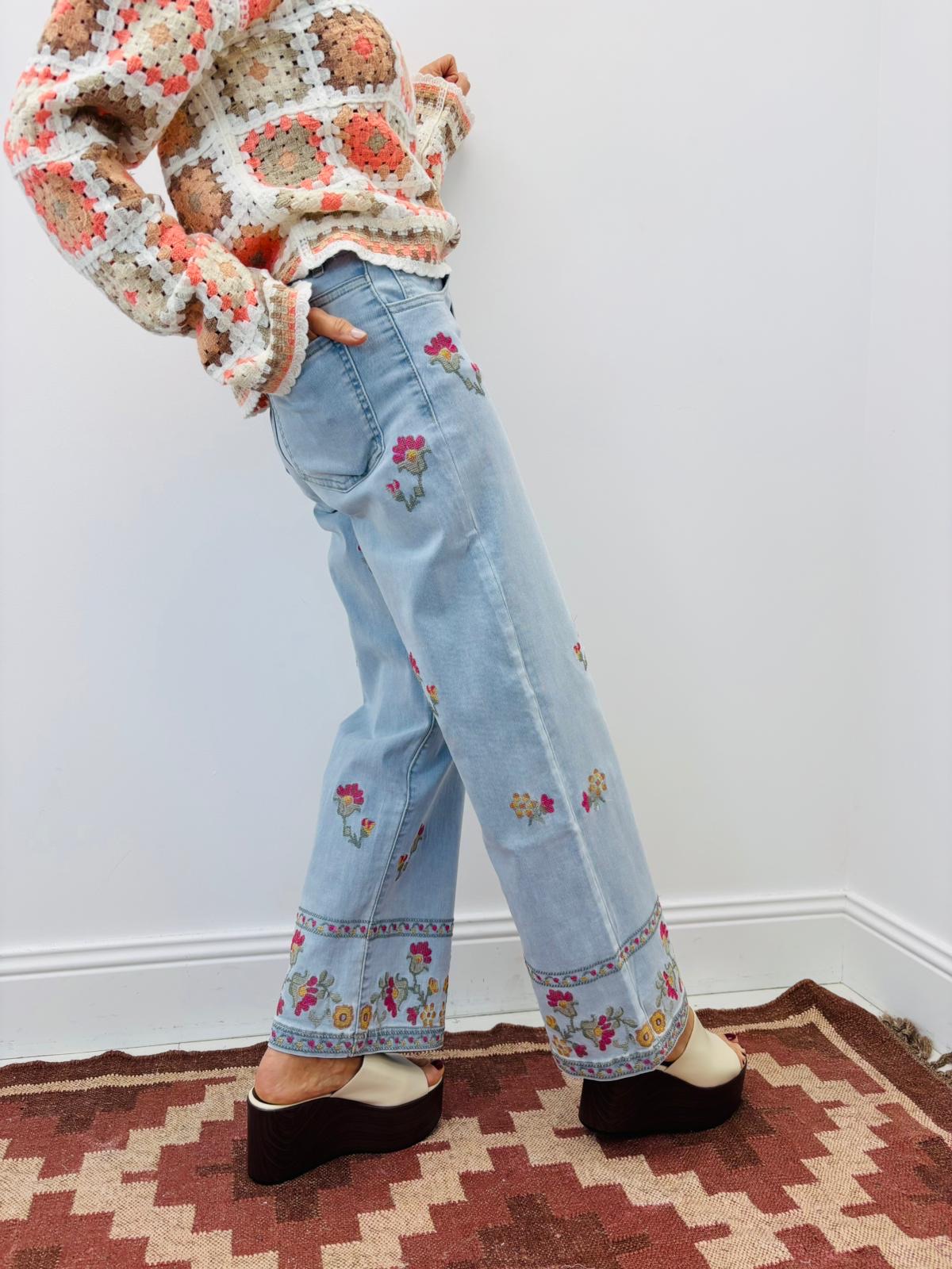 Jean Wide Leg Brodé Floral Esprit Bohème Chic