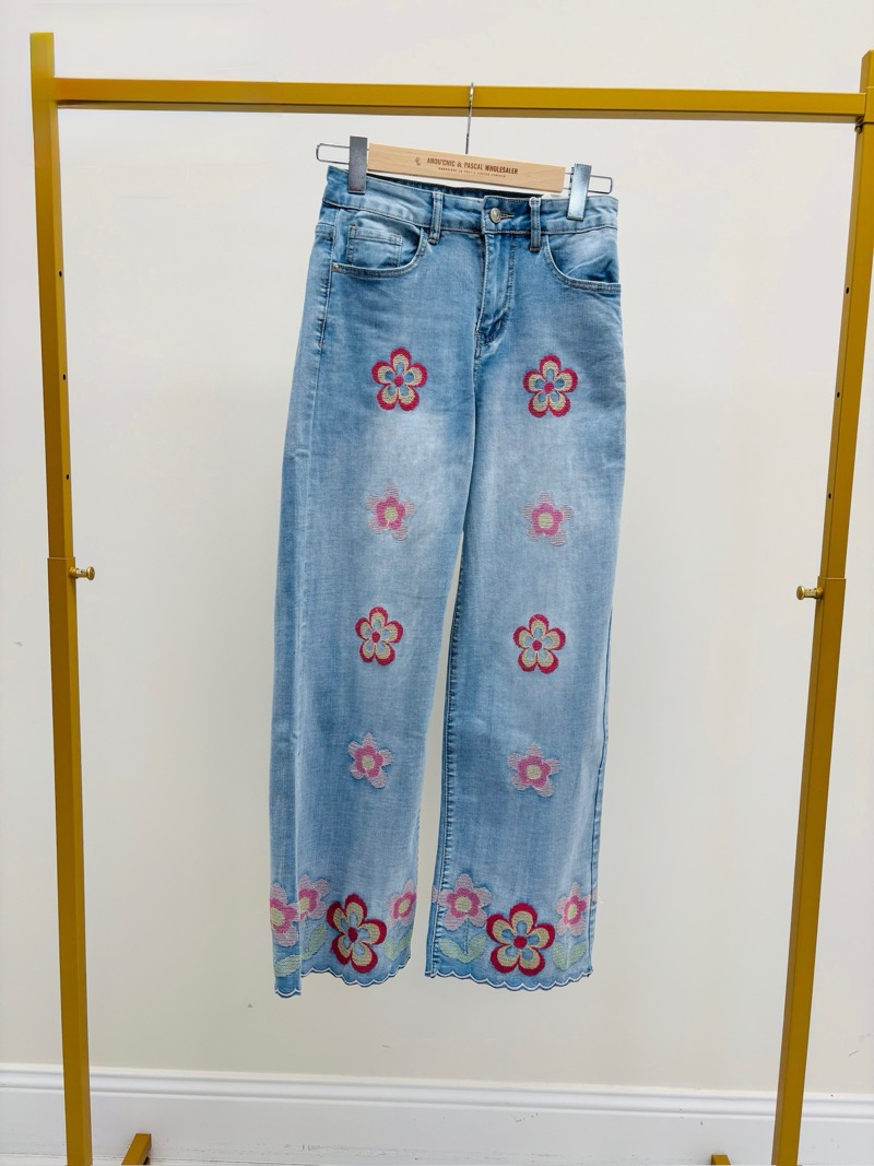 Jean Wide Leg Brodé Floral Pop Esprit Bohème Chic