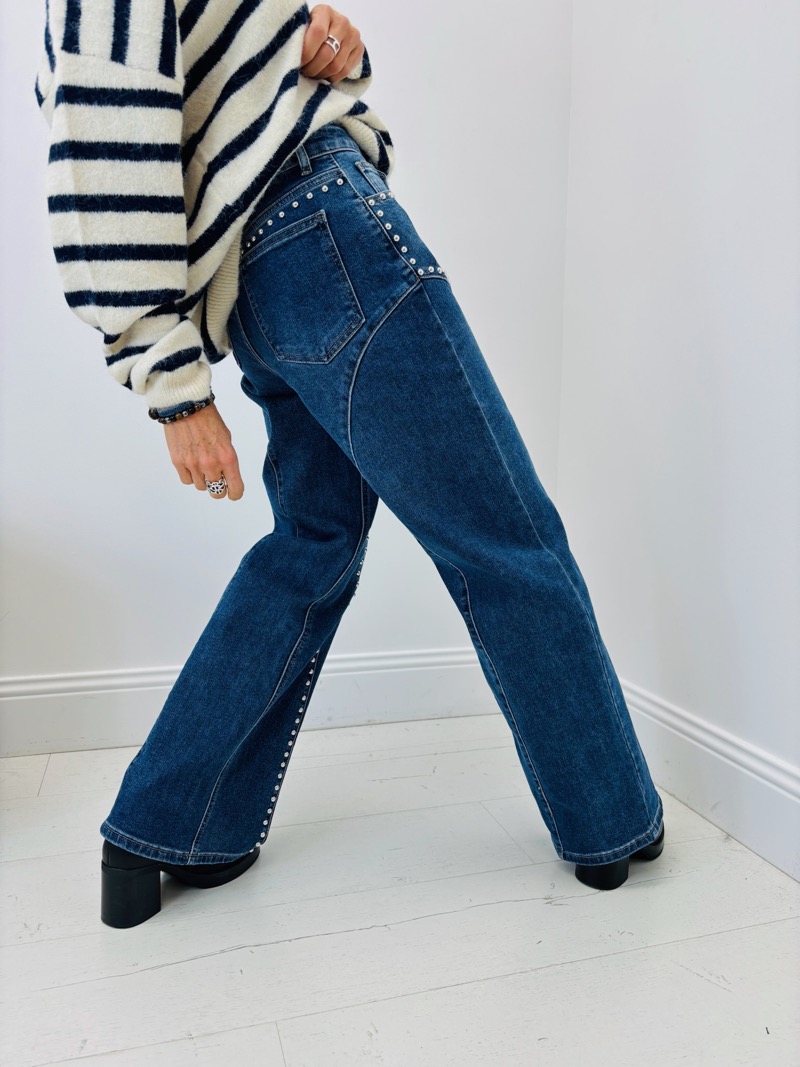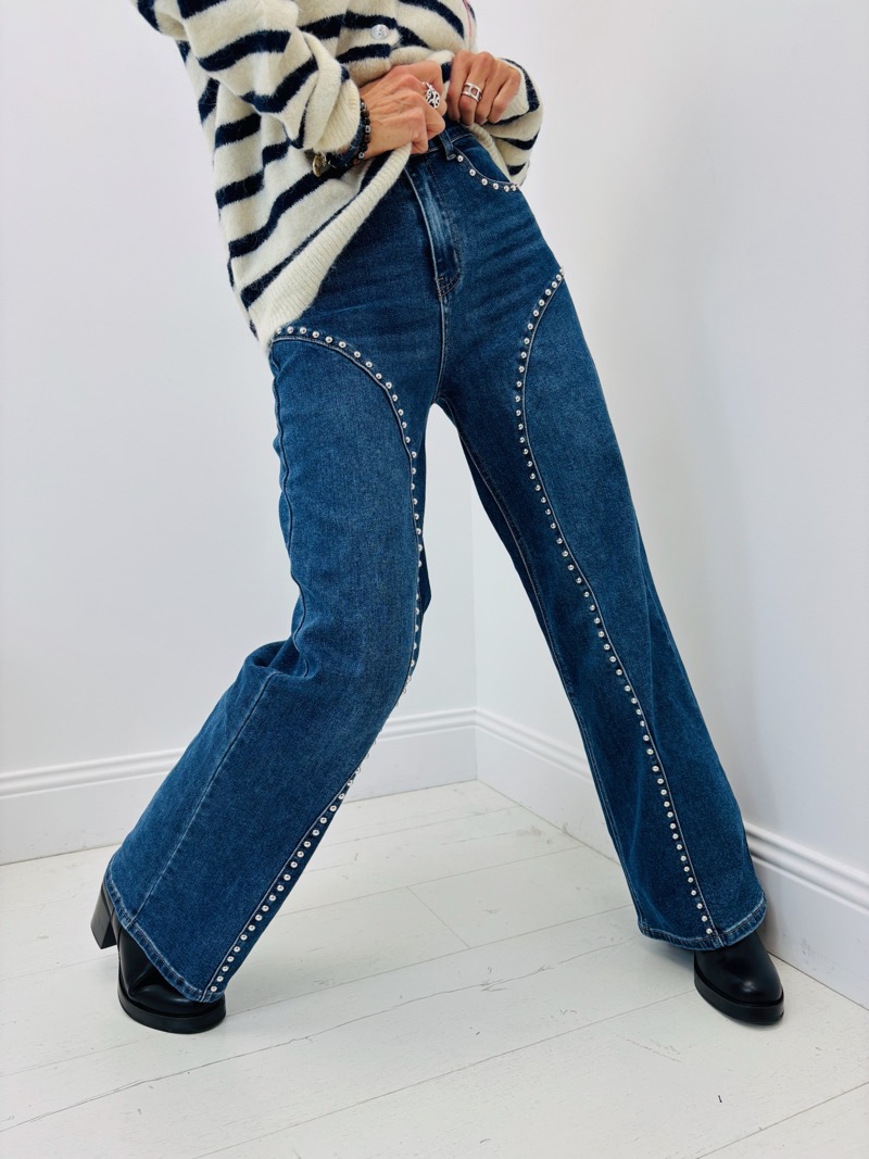 Jean Wide Leg Clouté – Silhouette Élancée & Détails Rock-Chic