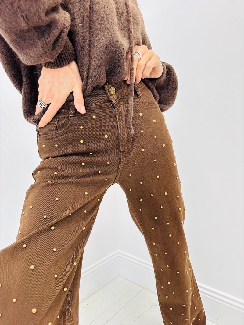 Jean Wide Leg Clouté – Silhouette Moderne & Détails Dorés Tendance