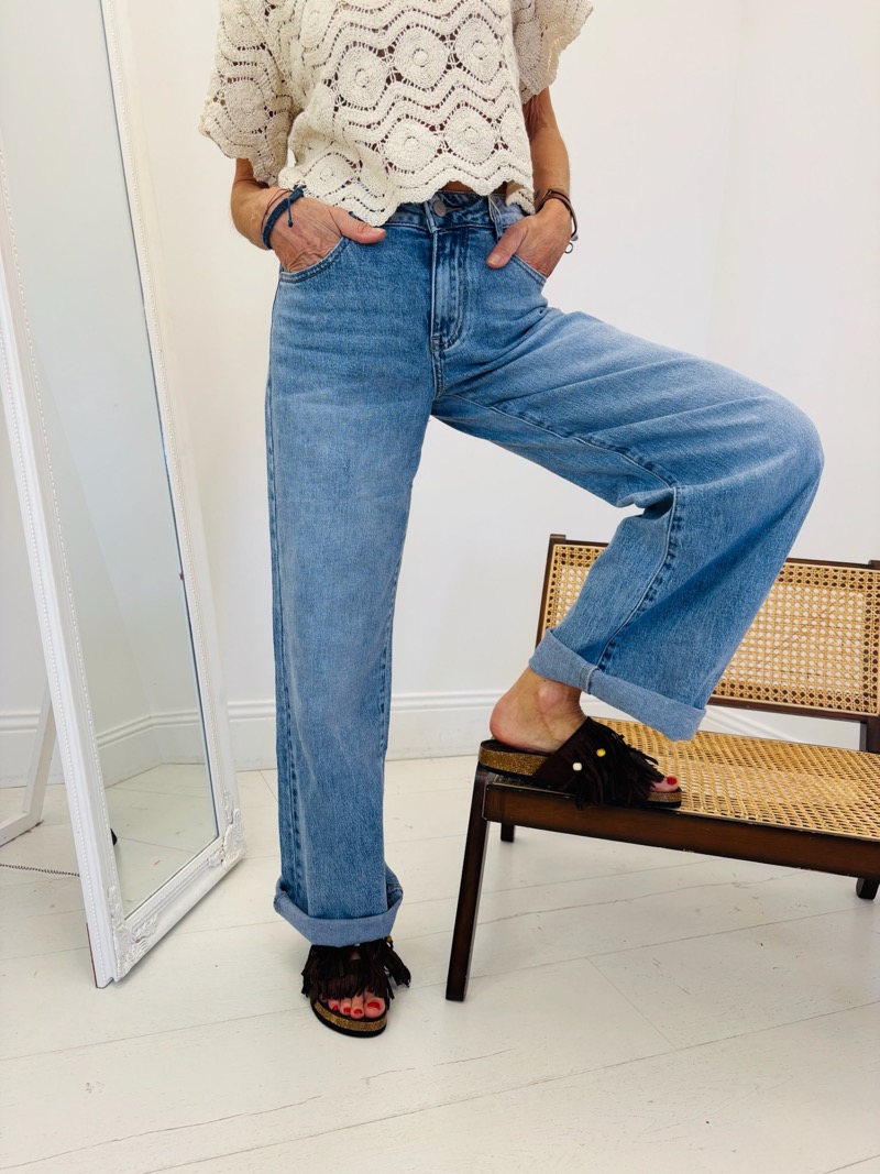 Un jean wide leg au style casual revisité avec une touche originale. Sa coupe ample et droite allonge la silhouette tout en offrant un confort optimal, idéale pour un look moderne et décontracté.