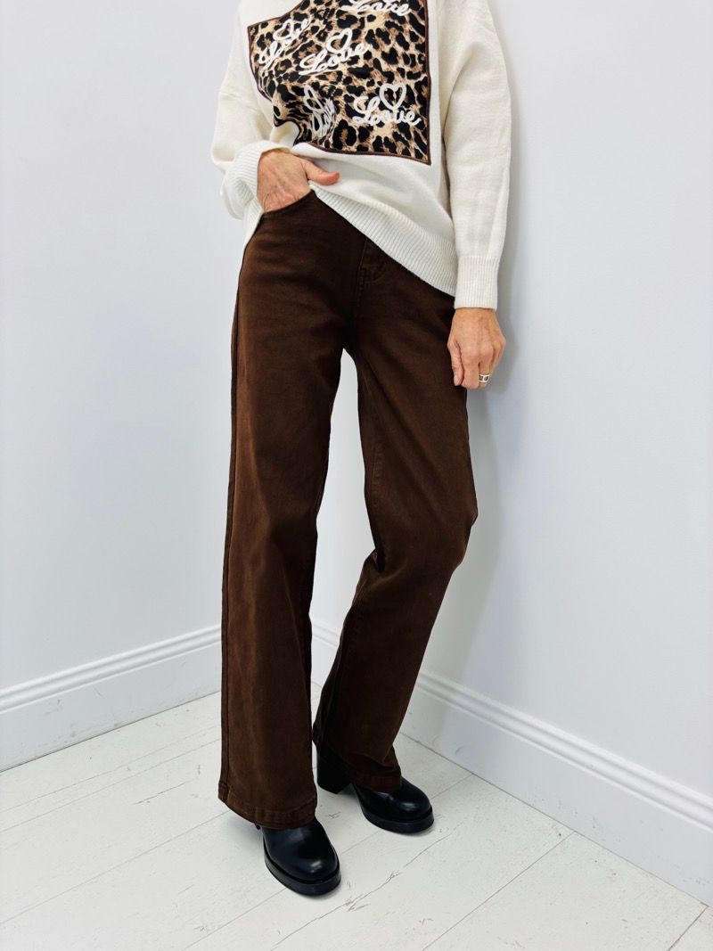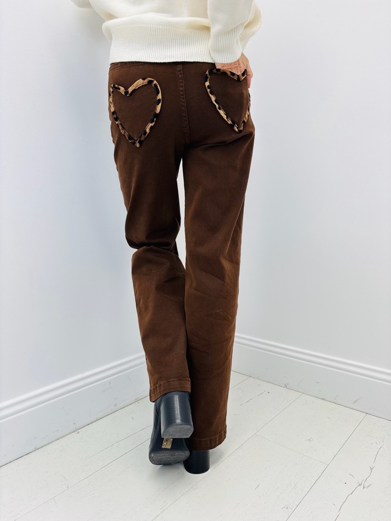 Jean Wide Leg Détail Cœurs Léopard – Silhouette Moderne & Touche Glam