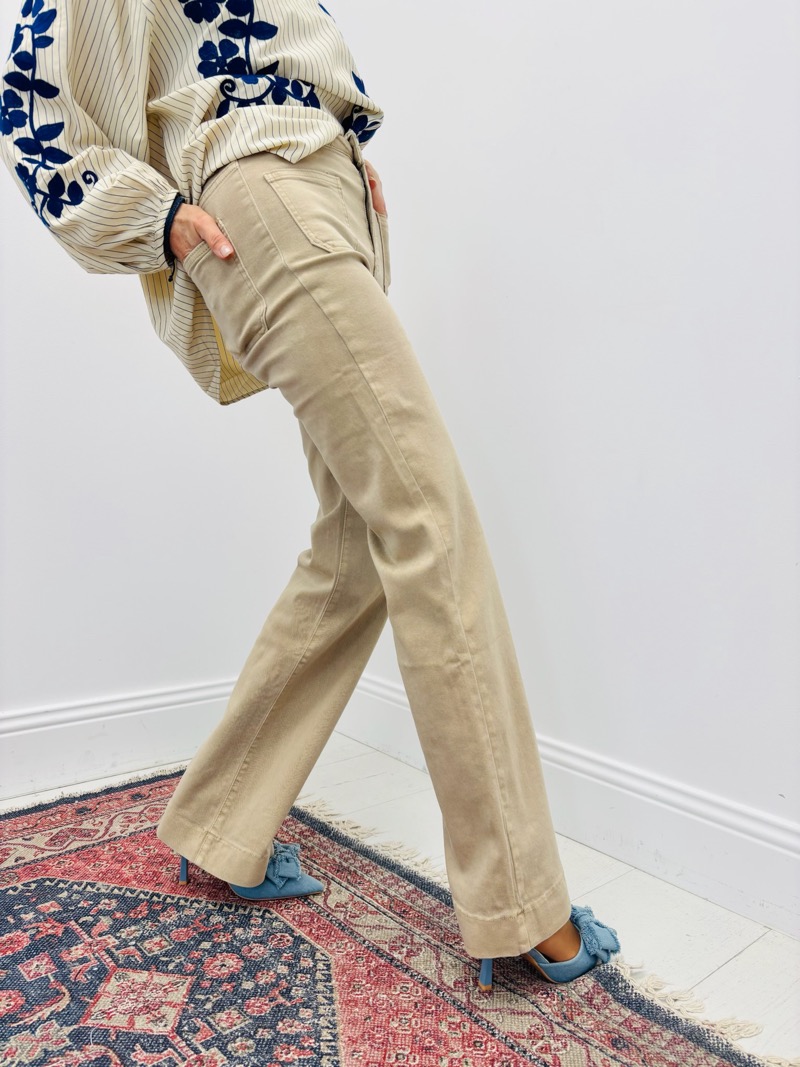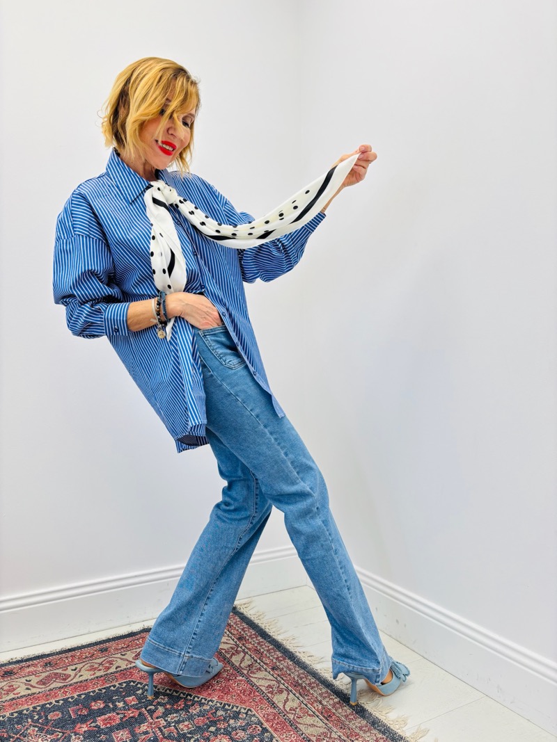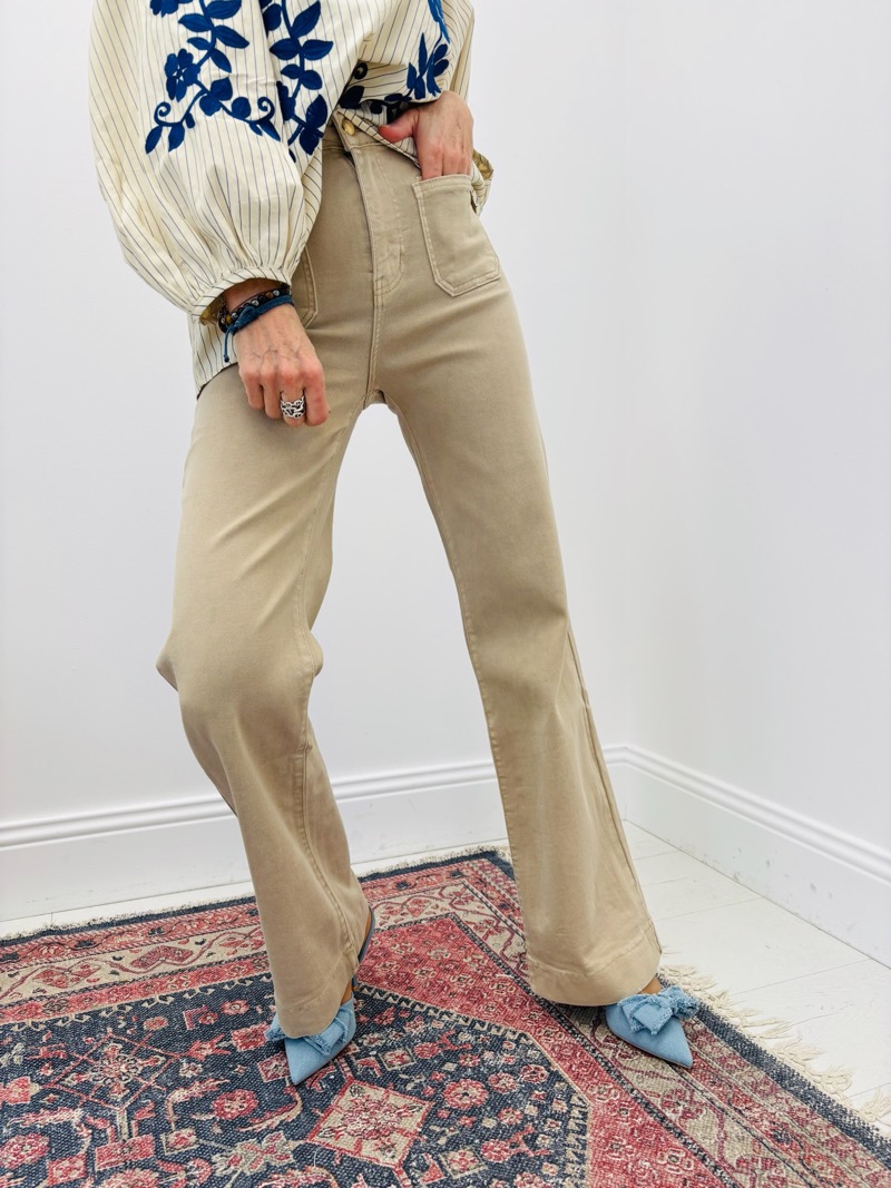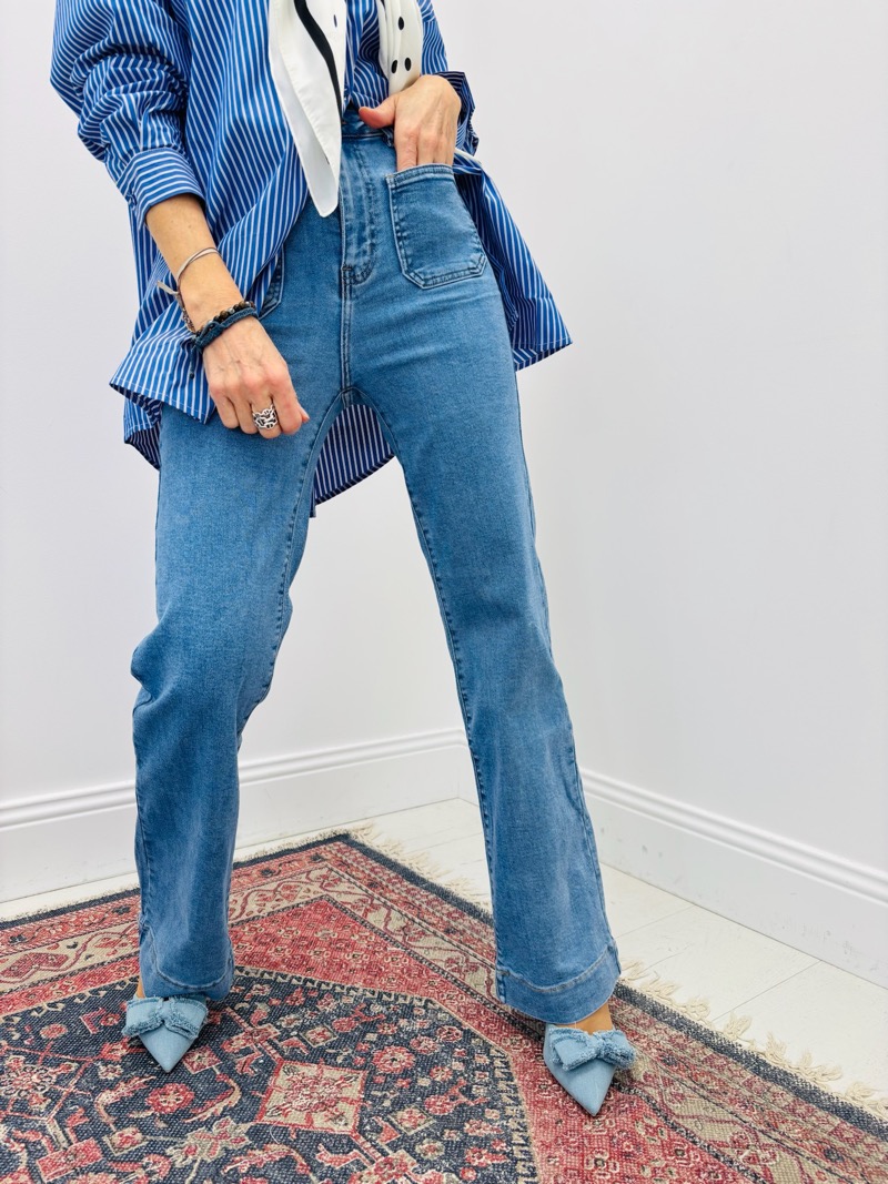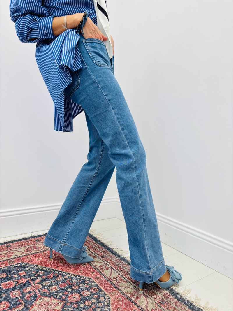 Confectionné dans une toile denim souple et agréable à porter, ce jean offre une belle tenue sans rigidité. Il épouse les hanches avec justesse puis s’évase harmonieusement sur la jambe, créant une ligne élancée et élégante. Sa coupe est idéale pour répondre aux attentes des clientes à la recherche d’un jean mode, facile à porter au quotidien comme pour des looks plus habillés.