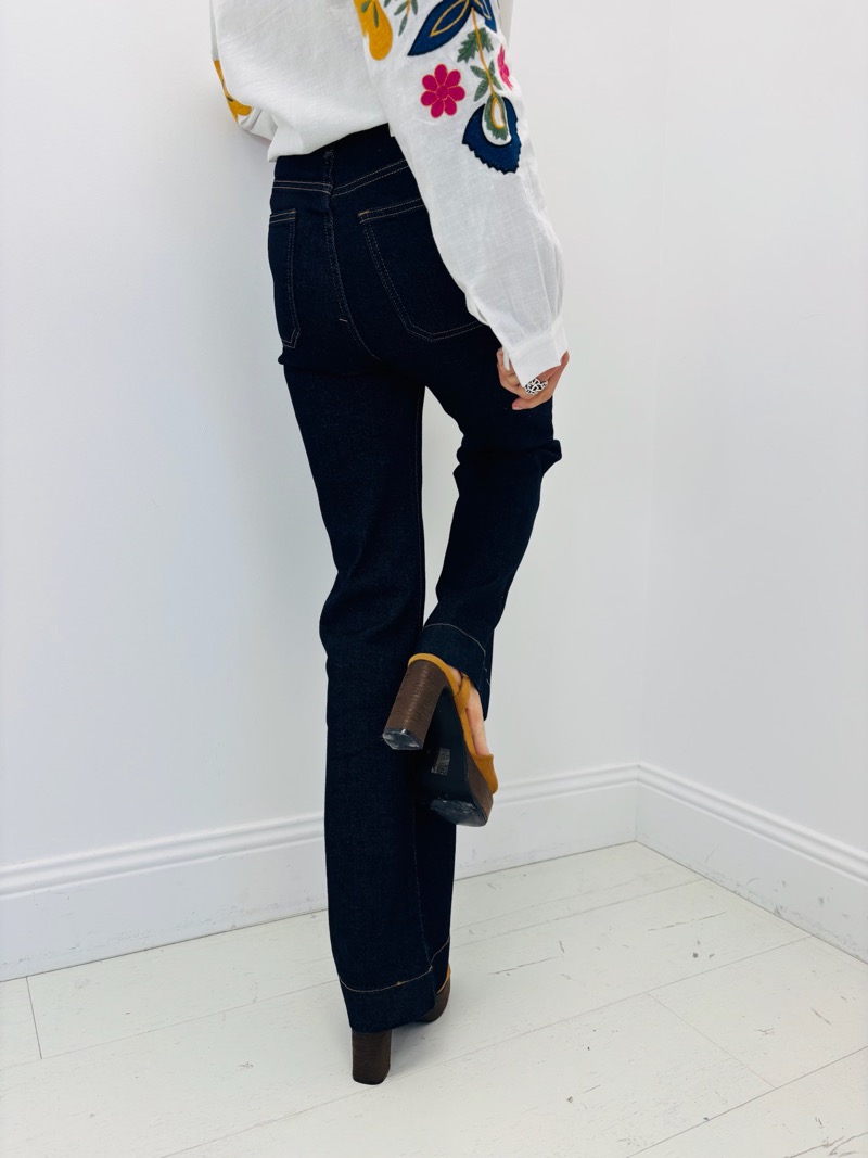 Avec sa ligne flatteuse et ses détails travaillés, ce jean s’impose comme un incontournable du dressing féminin moderne.