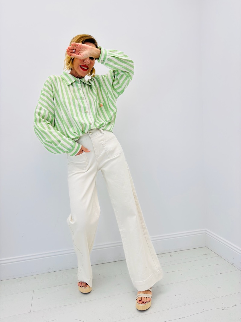 Il se porte aussi bien avec des sandales à talons, des baskets ou des mocassins, permettant de passer facilement d’un look casual chic à une tenue plus sophistiquée. Sa couleur écrue lumineuse en fait une pièce idéale pour les looks de mi-saison et d’été