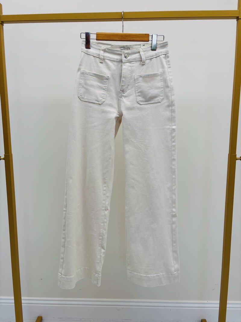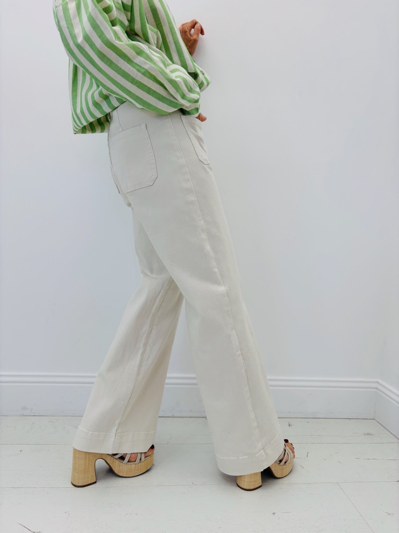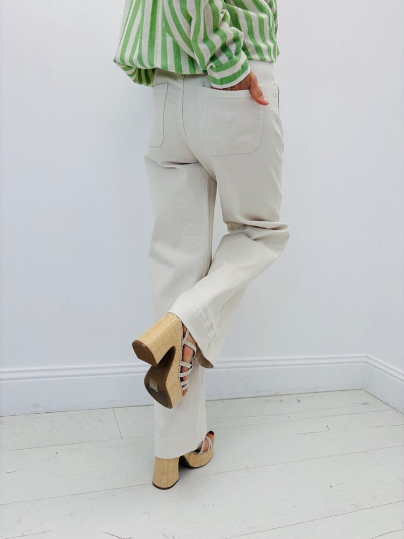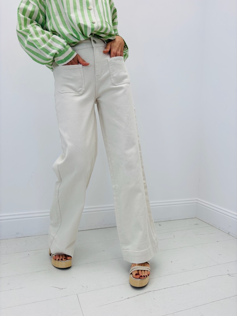 Confectionné dans un denim de qualité, ce jean combine tenue et souplesse, permettant un tombé naturel et élégant. Sa teinte écrue lumineuse en fait une pièce facile à associer, idéale pour créer des looks frais et modernes en toute saison.