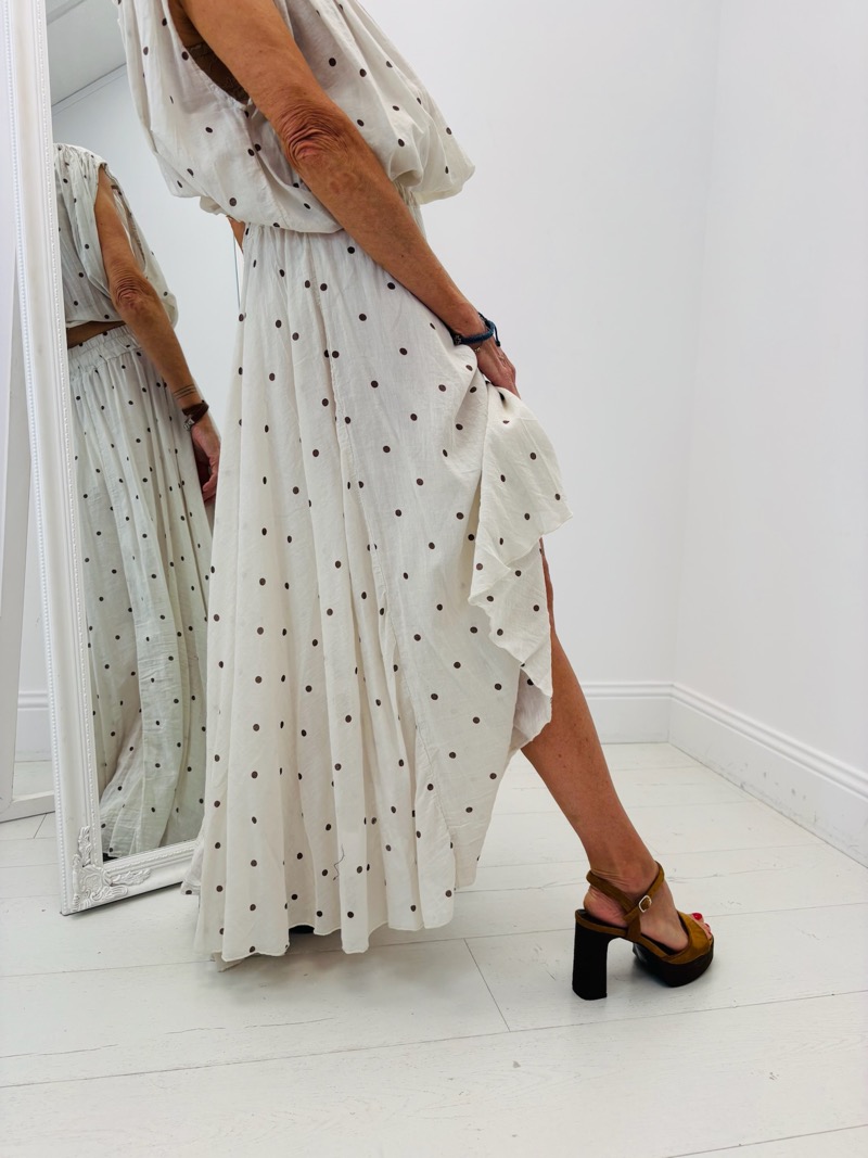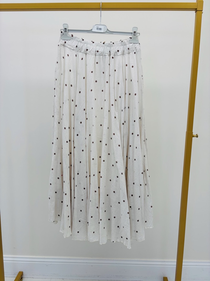 Découvrez notre jupe à pois doublée, conçue pour apporter une touche de fraîcheur et d’élégance à votre garde-robe.
