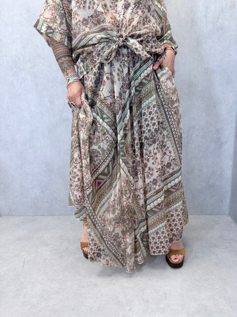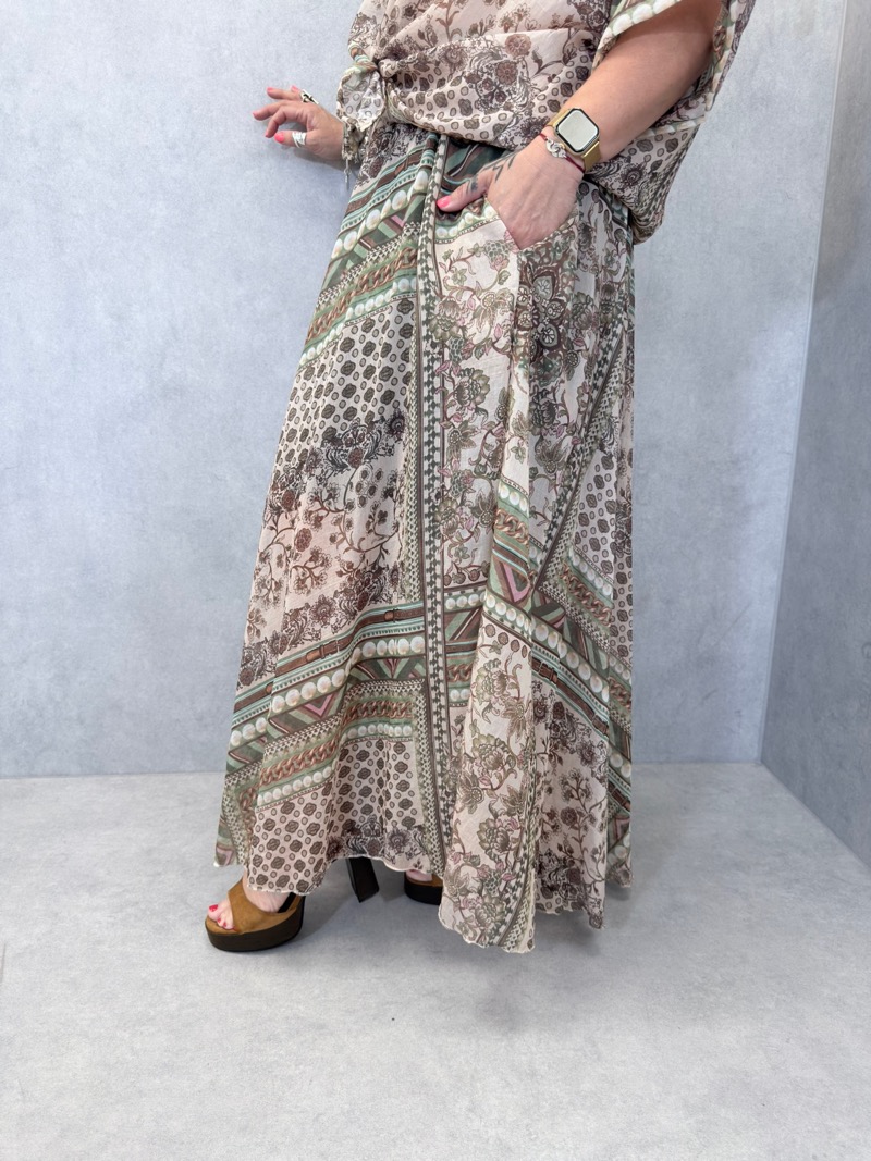 Découvrez notre jupe bohème imprimée, une pièce incontournable pour compléter votre garde-robe avec style. Ces jupes se distinguent par leurs motifs élégants et un design fluide, parfaits pour une allure décontractée mais chic.