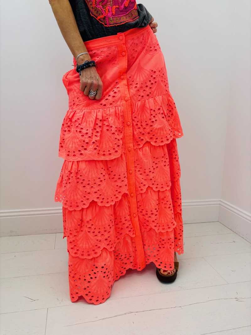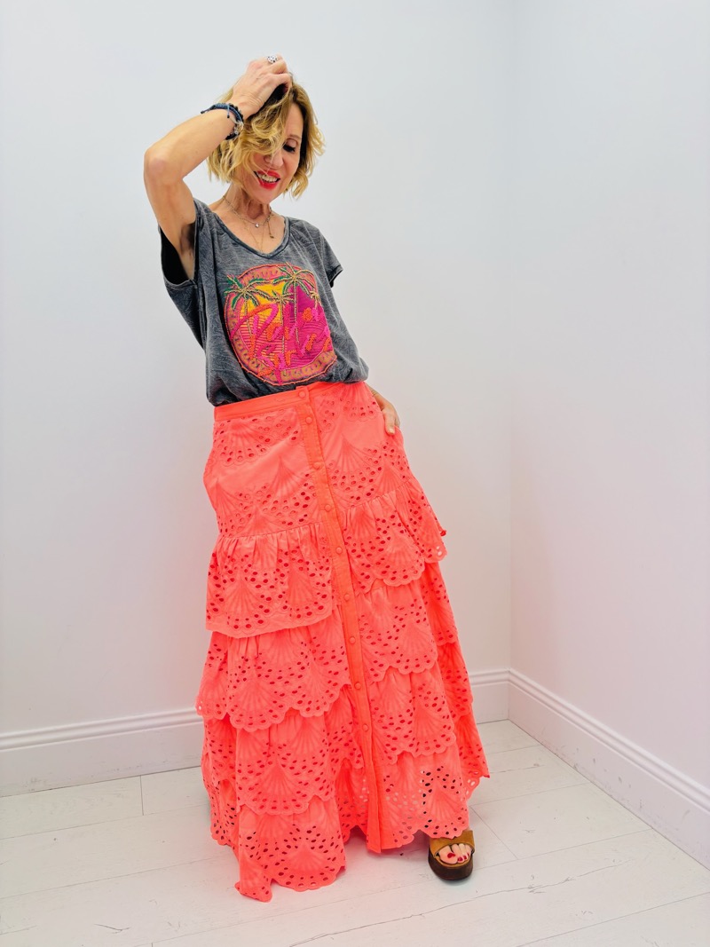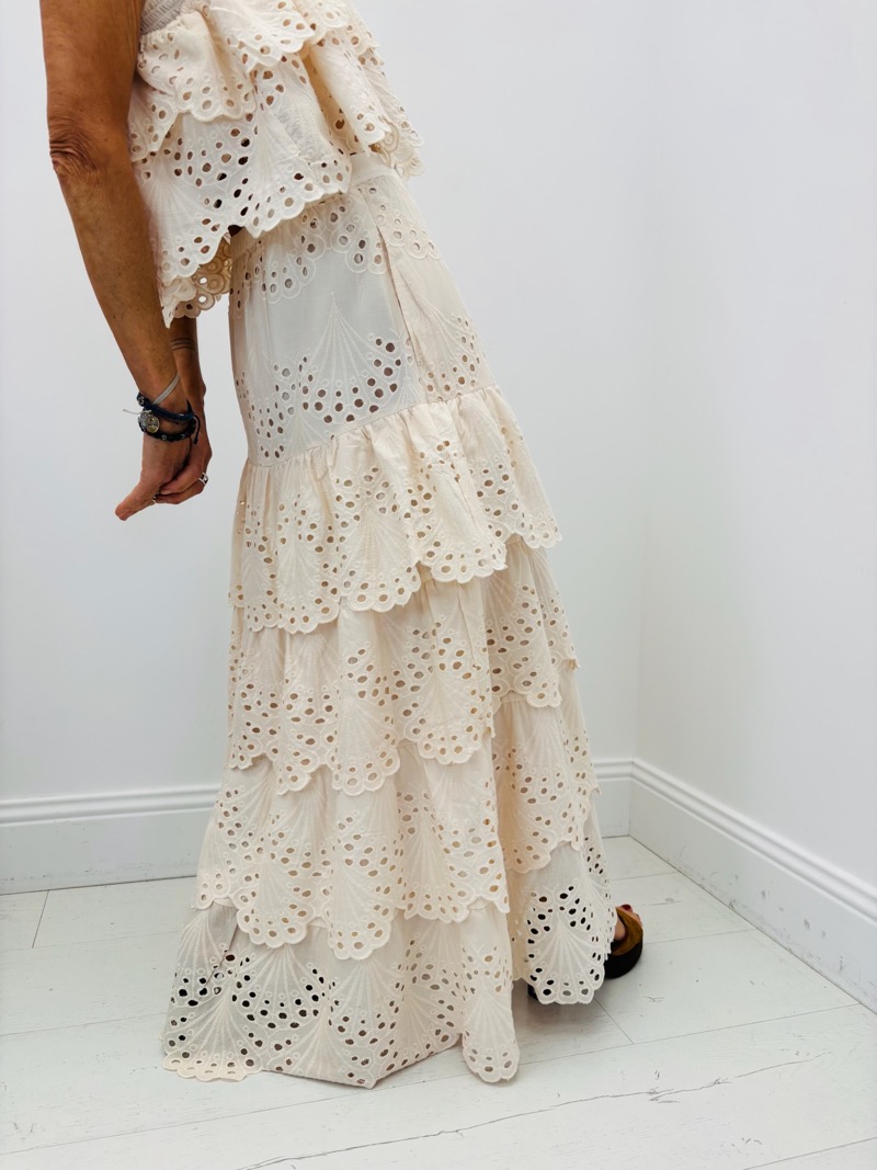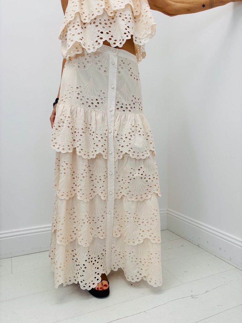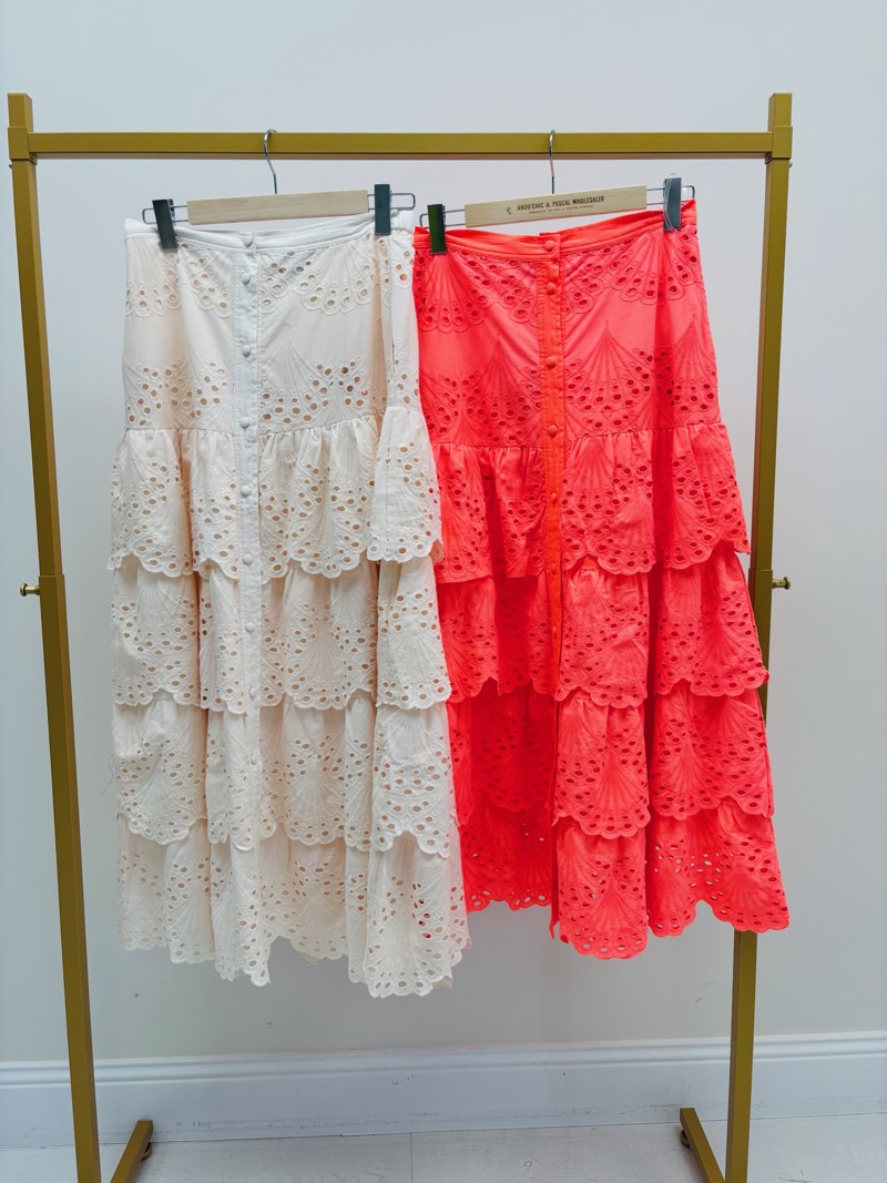 Découvrez notre jupe brodée, parfaite pour ajouter une touche d’élégance à votre garde-robe. Fabriquée en coton, elle assure confort et style.