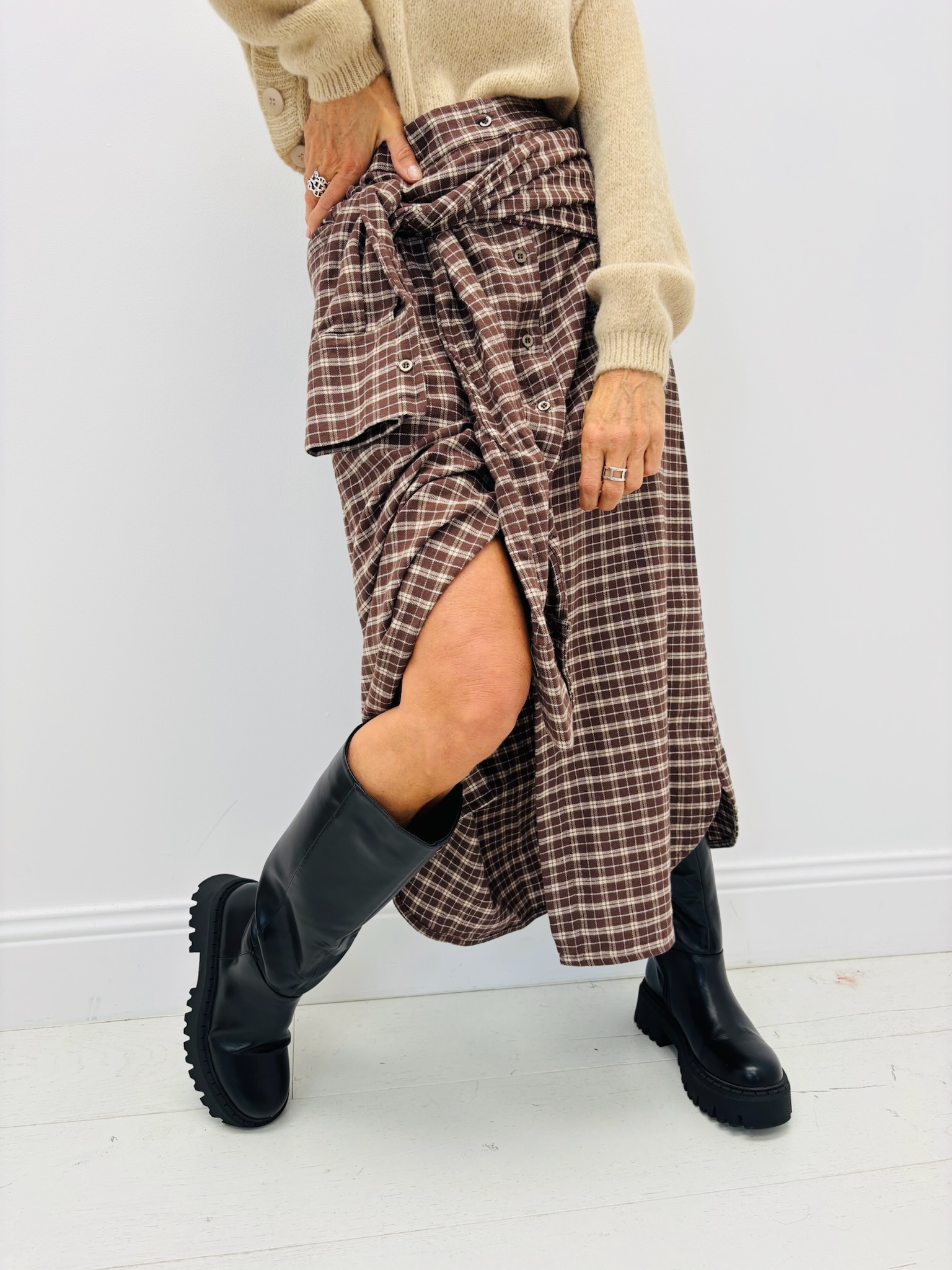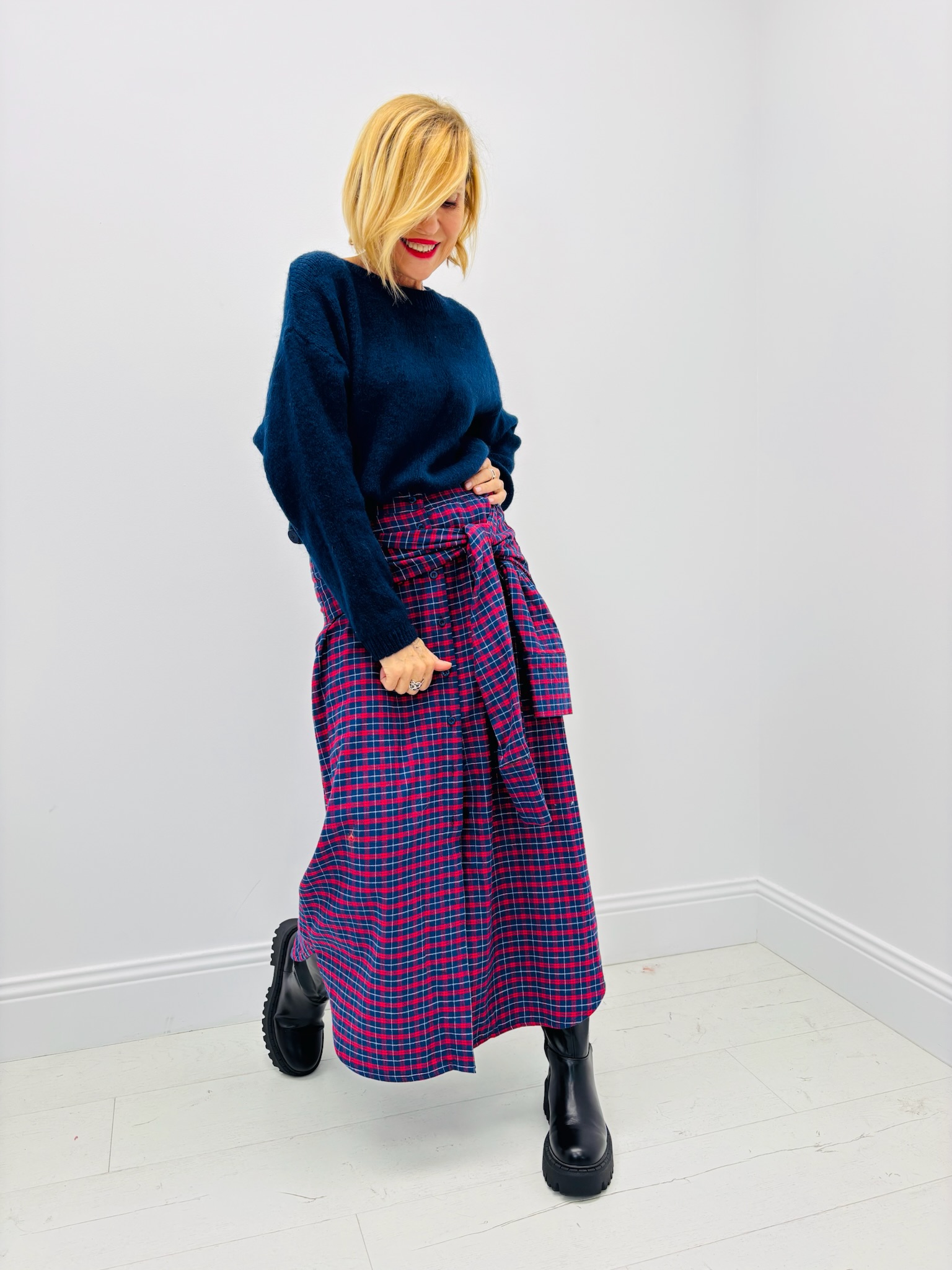 Une pièce originale et tendance inspirée de la chemise d’homme revisitée en jupe ! Réalisée en 100 % coton doux, elle séduit par son effet noué à la taille et son style décontracté-chic, parfait pour l’automne.
