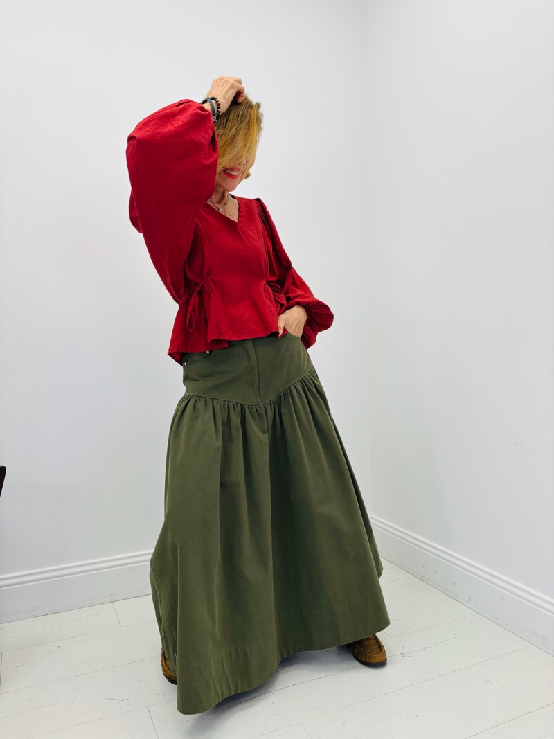 Découvrez notre jupe denim kaki, l’incarnation parfaite de l’élégance décontractée. Conçue pour apporter une touche moderne à votre garde-robe, cette jupe est un incontournable intemporel.