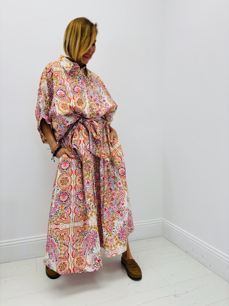 Découvrez notre jupe imprimée aux couleurs vibrantes, idéale pour apporter une touche de style à votre garde-robe. Son design unique et sa matière légère en coton font de cette pièce un indispensable pour toutes les saisons.
