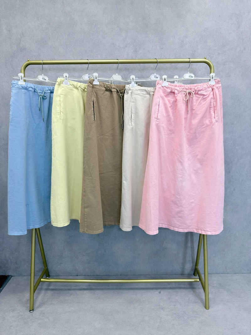 Sa taille élastiquée avec lien de serrage permet un ajustement parfait et s’adapte facilement aux morphologies du 40 au 46. Confectionnée dans une matière douce et respirante, cette jupe est idéale pour les saisons printanières et estivales. Sa teinte bleu doux apporte une touche de fraîcheur et s’intègre facilement dans toutes les collections.
