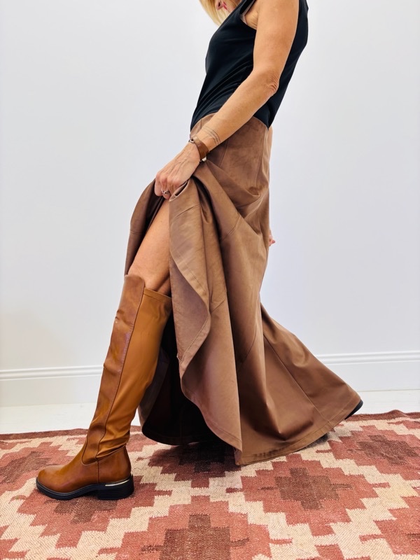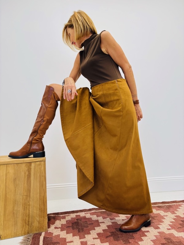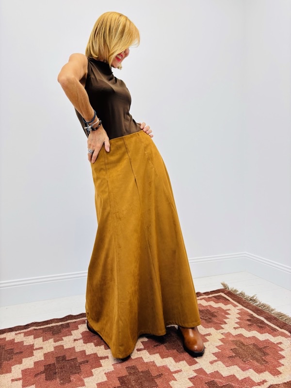 Jupe Longue en Suédine évasée – Fabrication française 🇫🇷