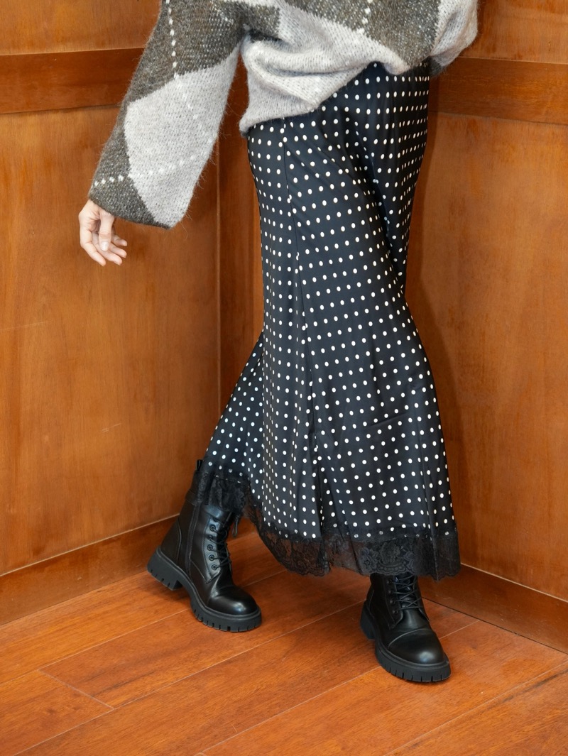Jupe Longue Satinée à Pois – Finesse Italienne en Viscose & Soie (Made in Italy)