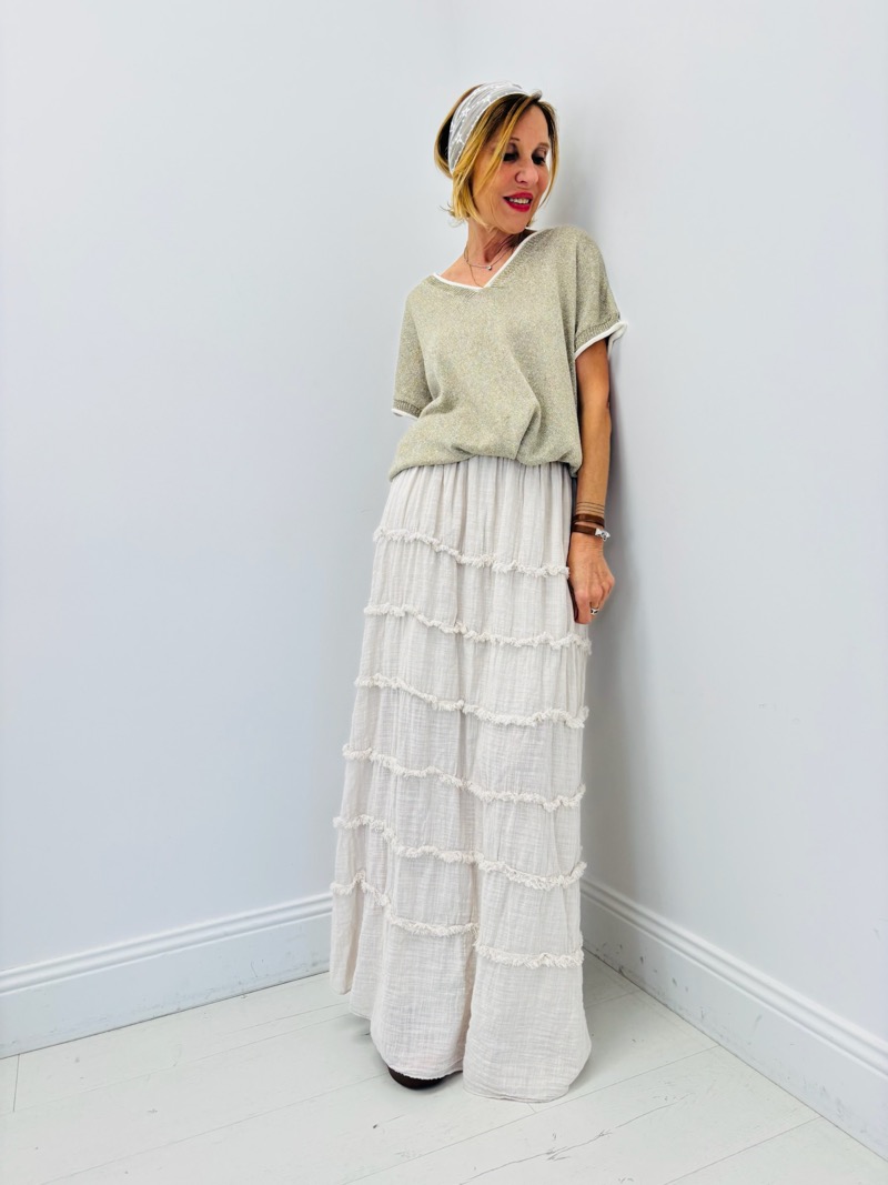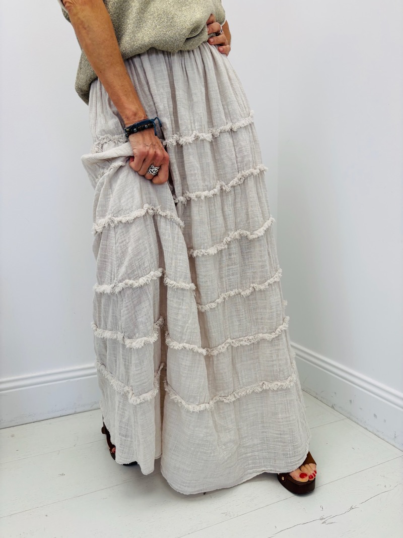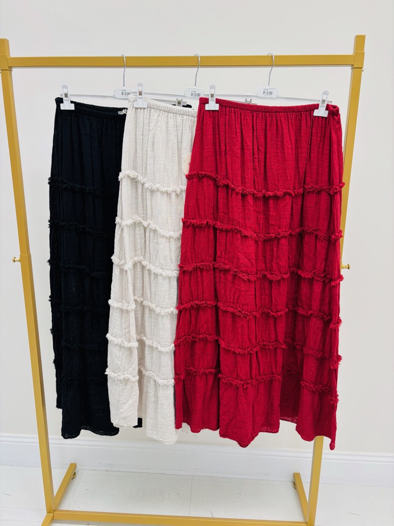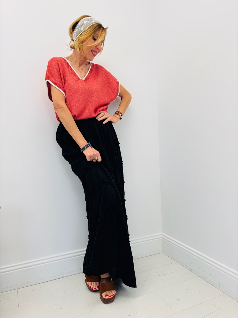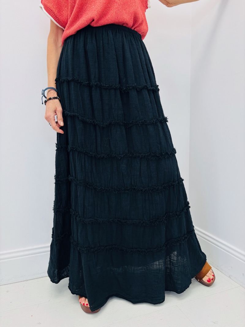 Découvrez cette jupe longue alliant confort et style, idéale pour toutes les occasions. Confectionnée dans des matières de haute qualité, elle vous assure une allure raffinée.