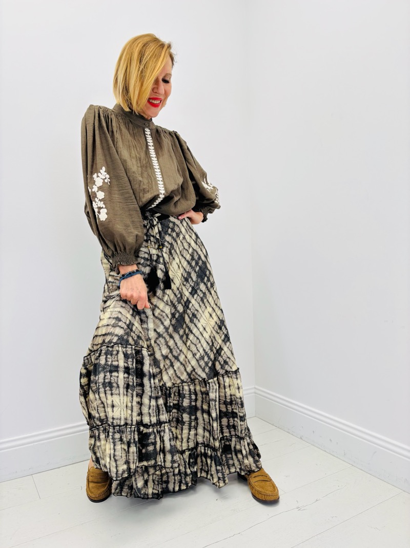 Idéale pour toutes les saisons, cette jupe offre une sensation légère et un style intemporel, vous permettant de vous démarquer avec chic et sophistication.
