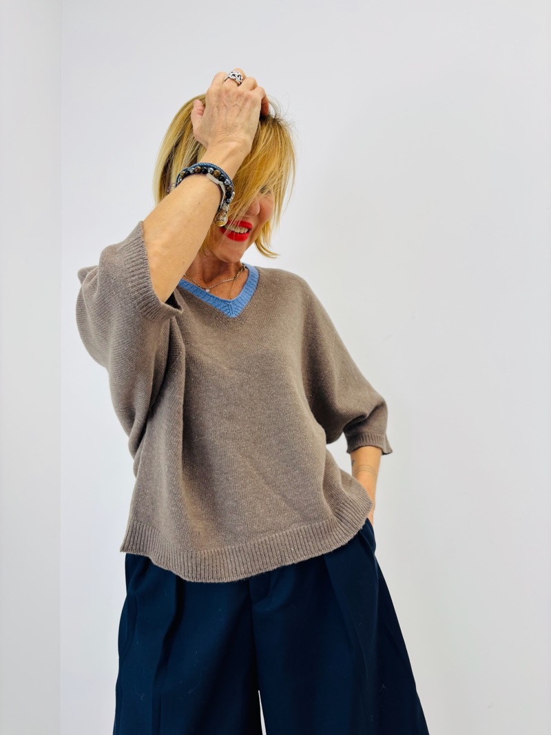 • Modèle : Maille manches 3/4 col V contrasté