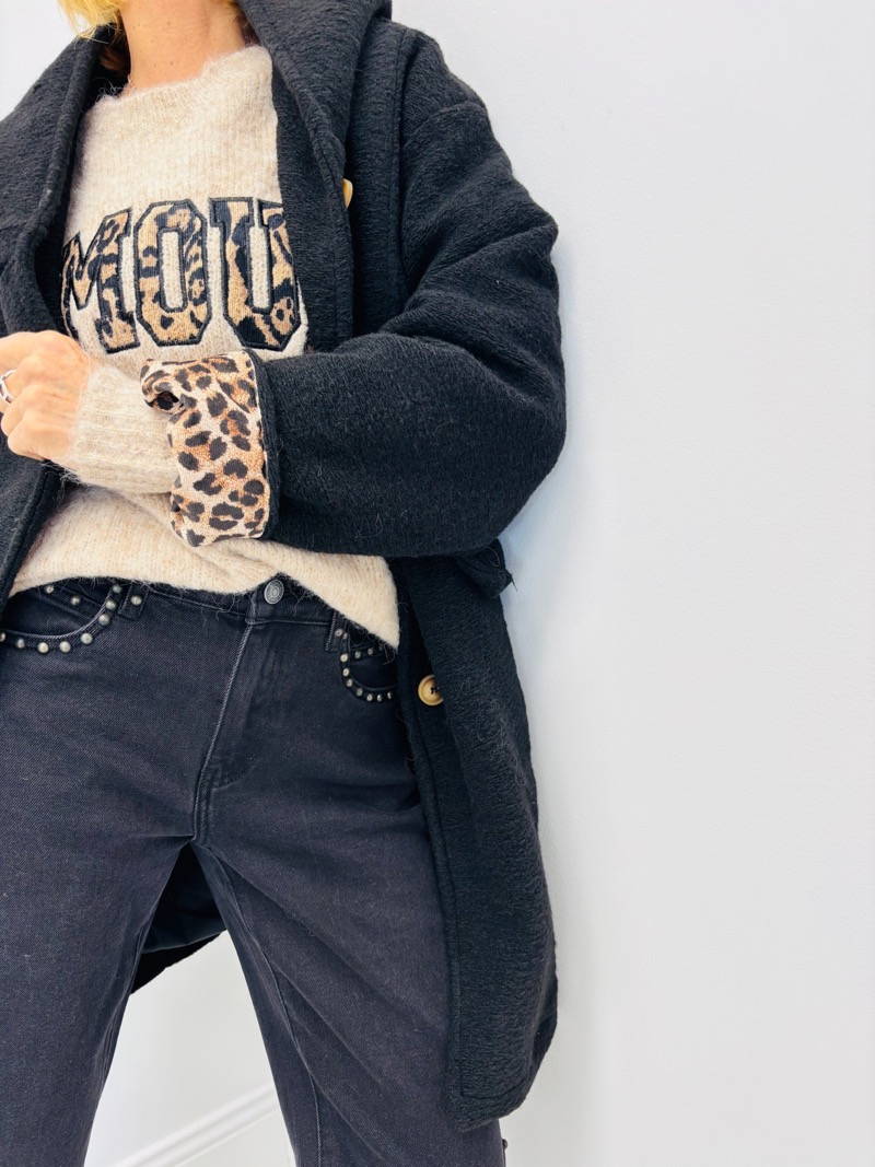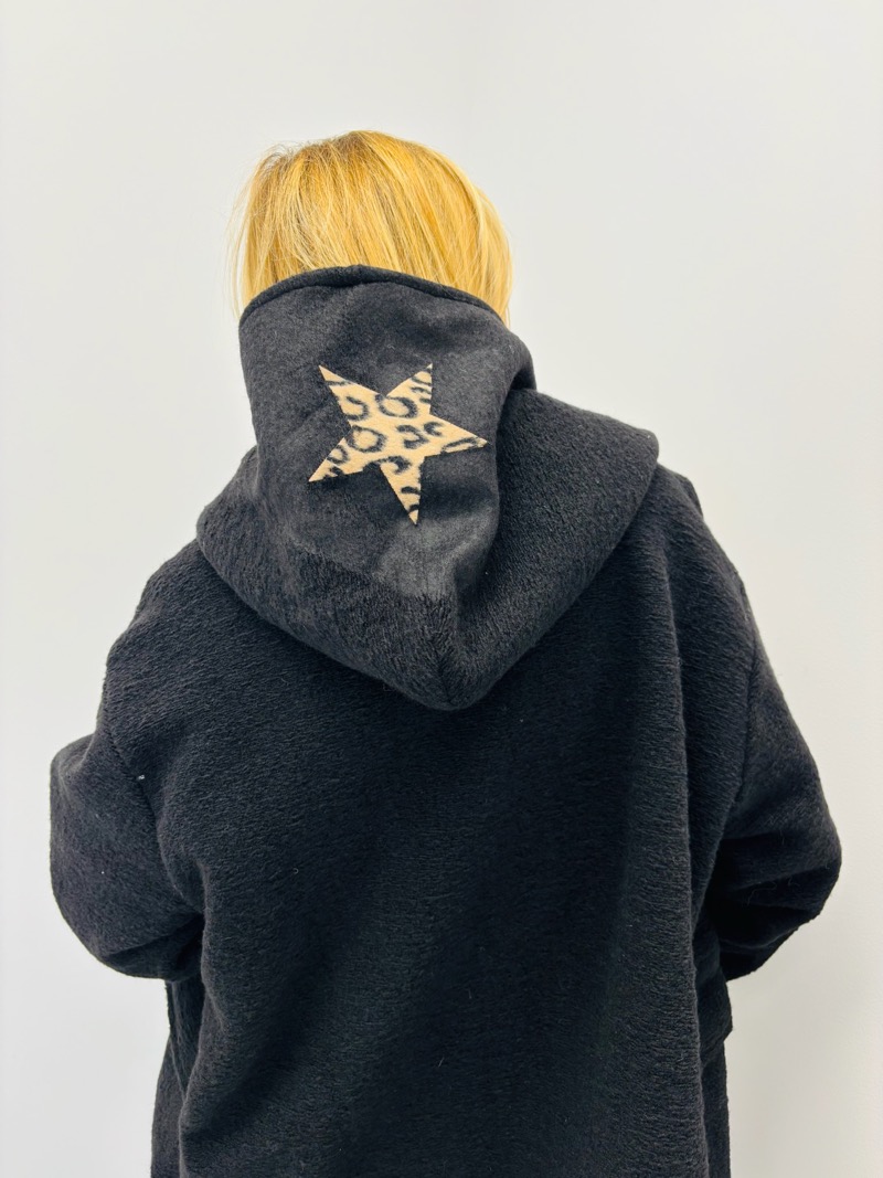 Sa coupe oversize et son toucher laineux apportent une douceur incomparable, tandis que les détails léopard sur les revers et la grande étoile au dos lui donnent une vraie identité mode.
