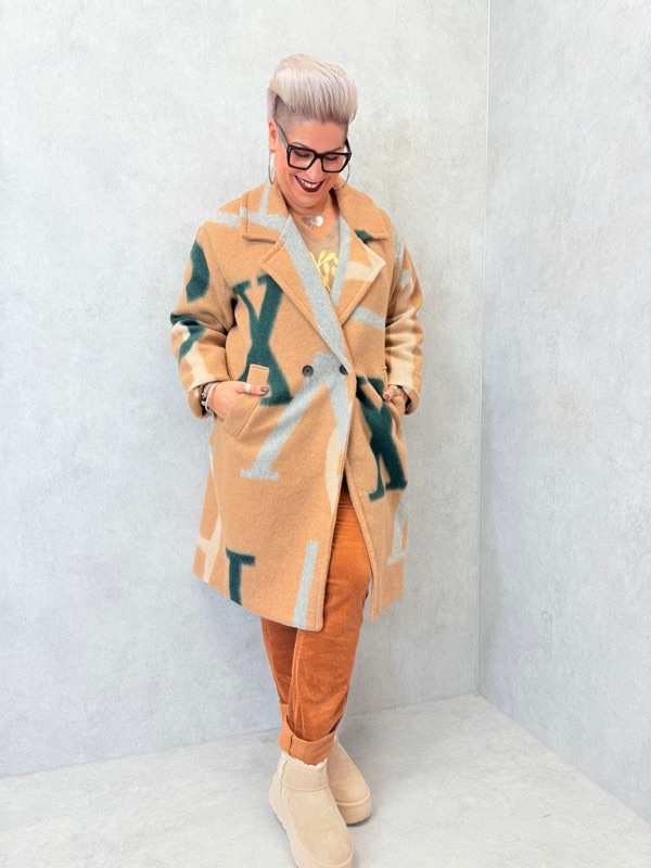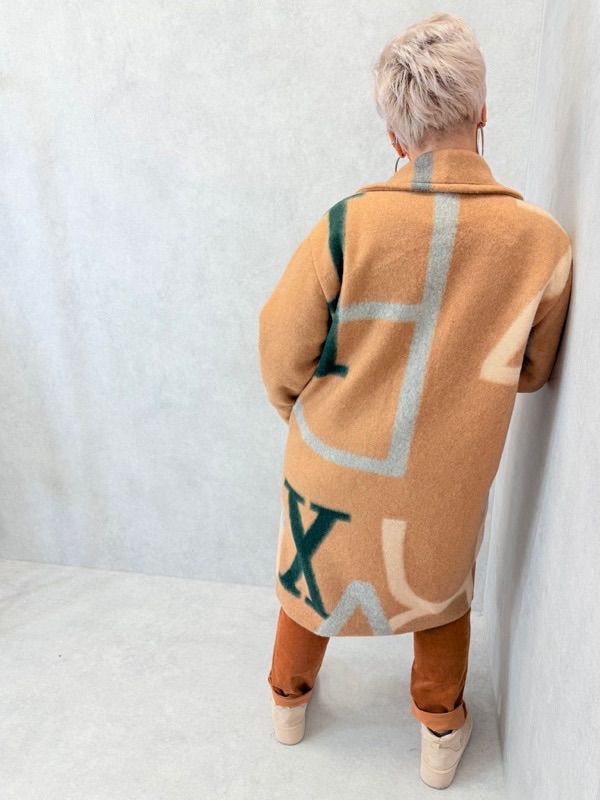 Un manteau moderne et chaleureux qui allie confort et style. Son motif géométrique aux tons naturels apporte une touche contemporaine et tendance, parfaite pour rehausser un look d’hiver.