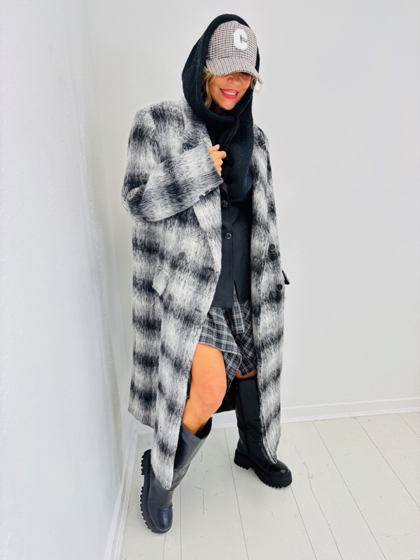 Chic et moderne, ce manteau long se distingue par son motif carreaux dégradés qui apporte du relief et du style à vos tenues hivernales. Confectionné avec 30% de laine, il offre chaleur et confort tout en restant léger à porter.