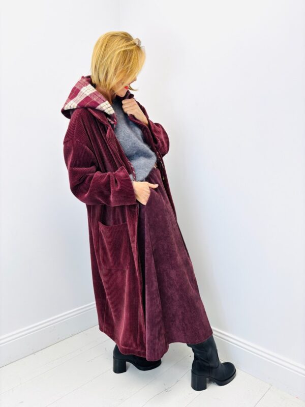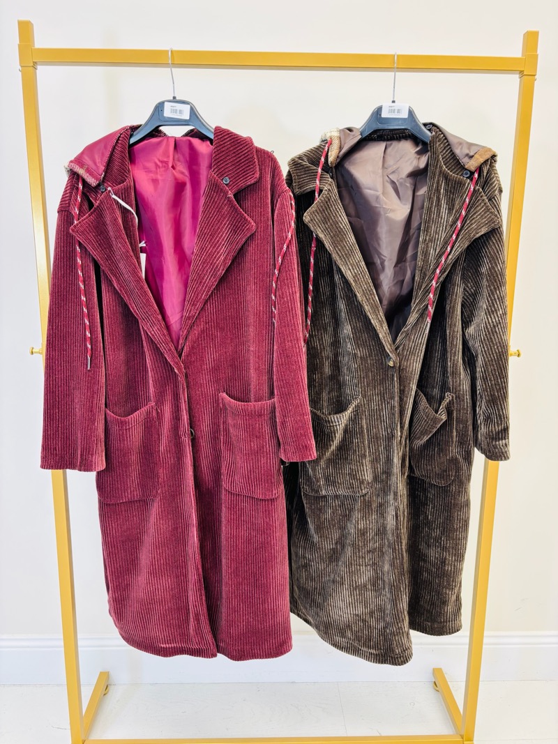 Manteau Long en Velours Côtelé – Capuche amovible & charme italien