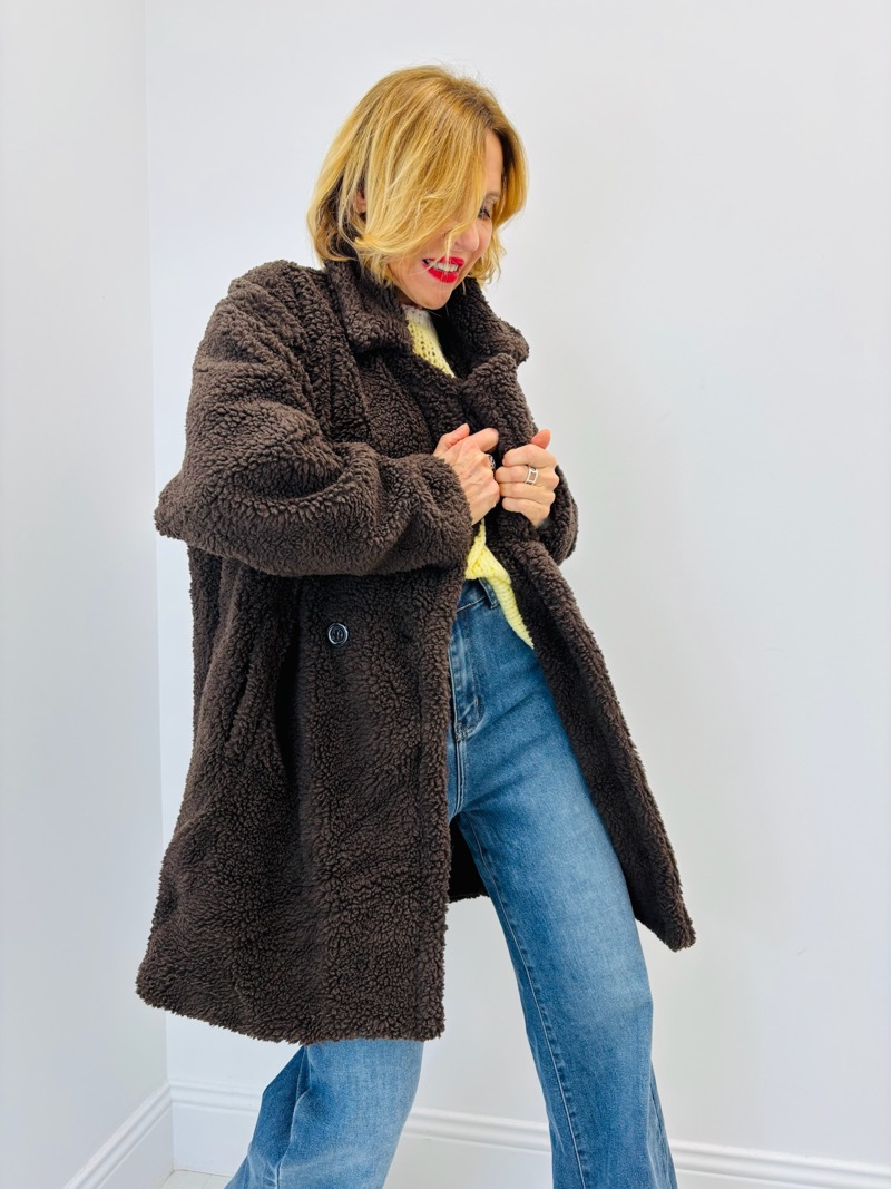 Plongez dans l’univers cosy avec ce manteau moumoute ultra-doux, une pièce essentielle pour rester au chaud tout en affichant un style tendance et réconfortant. Sa matière effet teddy, moelleuse et enveloppante, offre une sensation de confort immédiate. Avec sa coupe légèrement oversize, il apporte une allure moderne, décontractée et féminine à la fois.