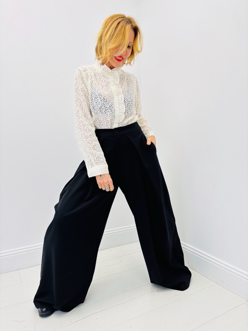 À porter avec une blouse en dentelle ou une chemise fluide rentrée pour un look chic et féminin. Il se marie parfaitement avec une veste blazer assortie pour une silhouette tailleur moderne, ou avec un pull fin pour une allure plus décontractée. Un pantalon polyvalent, idéal pour créer des looks élégants, actuels et faciles à valoriser en boutique.
