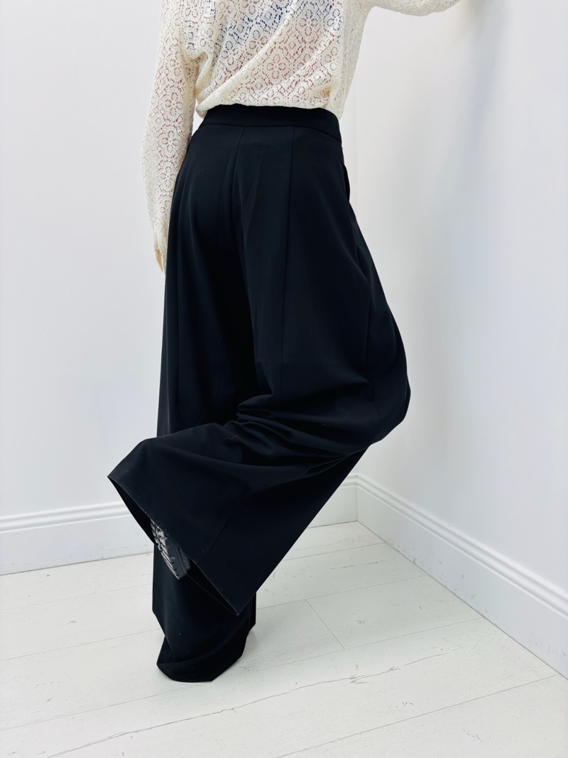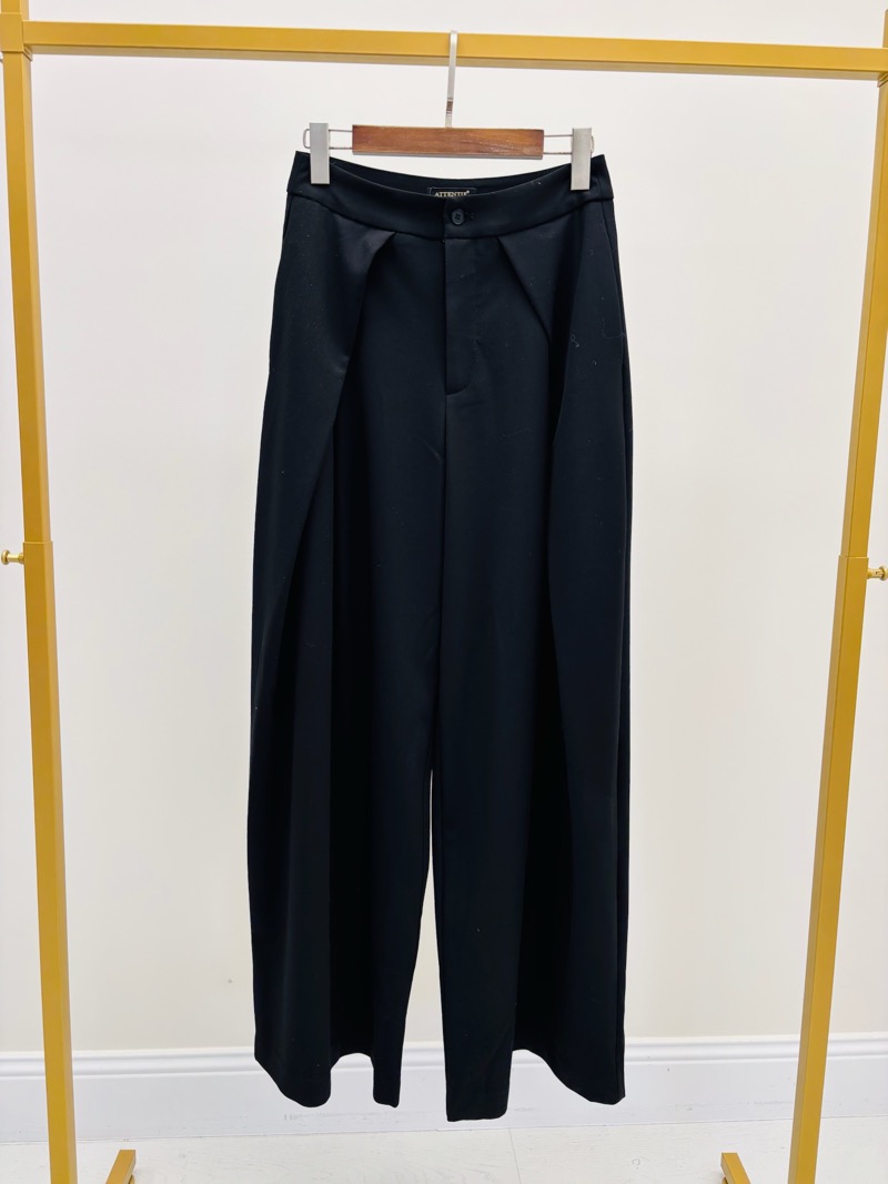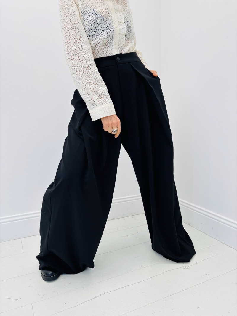 Ce pantalon à pinces oversize incarne une élégance contemporaine inspirée du tailoring revisité. Sa coupe large et structurée apporte une allure sophistiquée tout en garantissant un confort optimal. Les pinces à l’avant créent un joli volume et un tombé fluide, mettant en valeur la silhouette avec modernité et caractère.