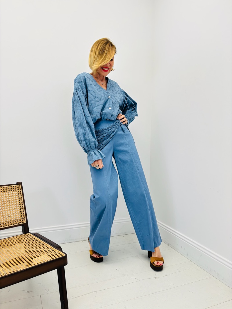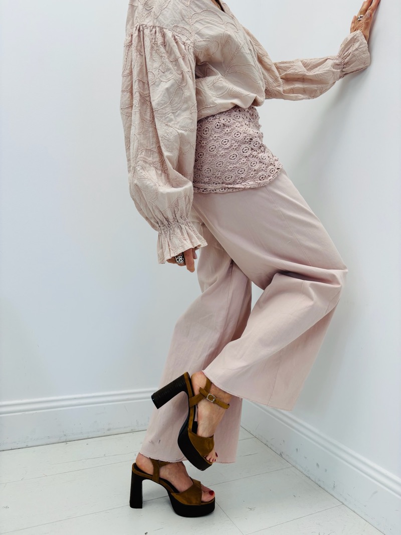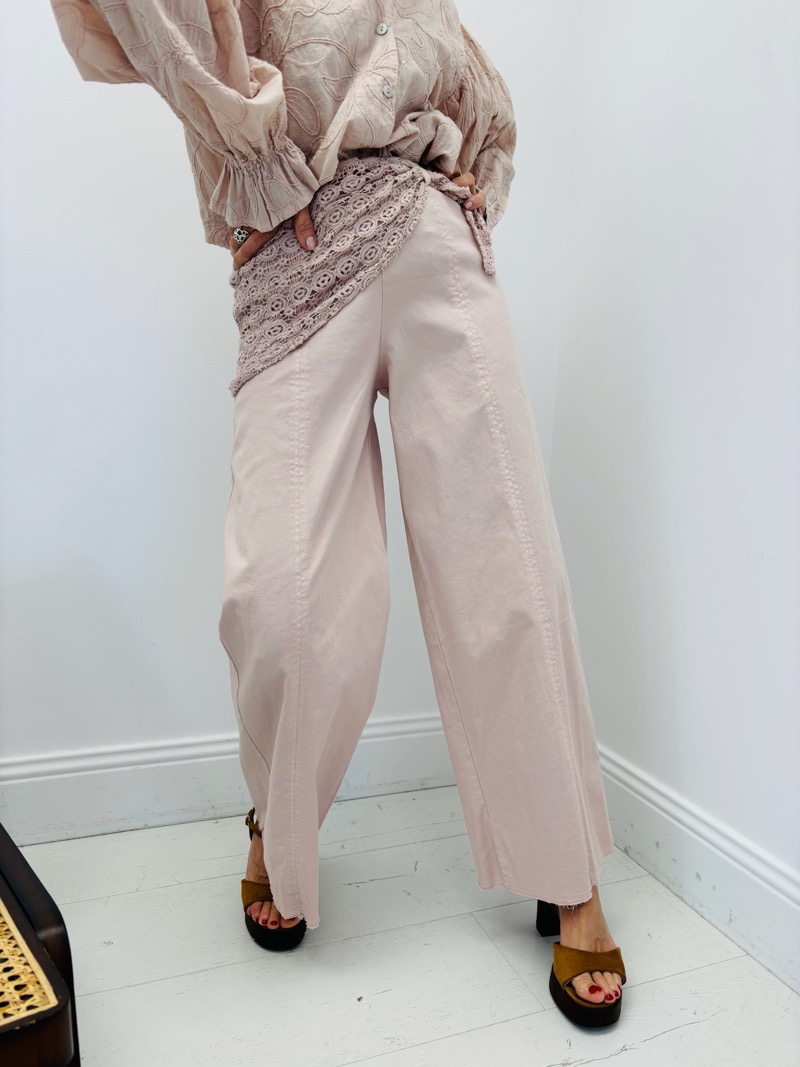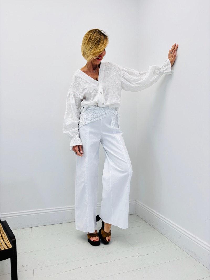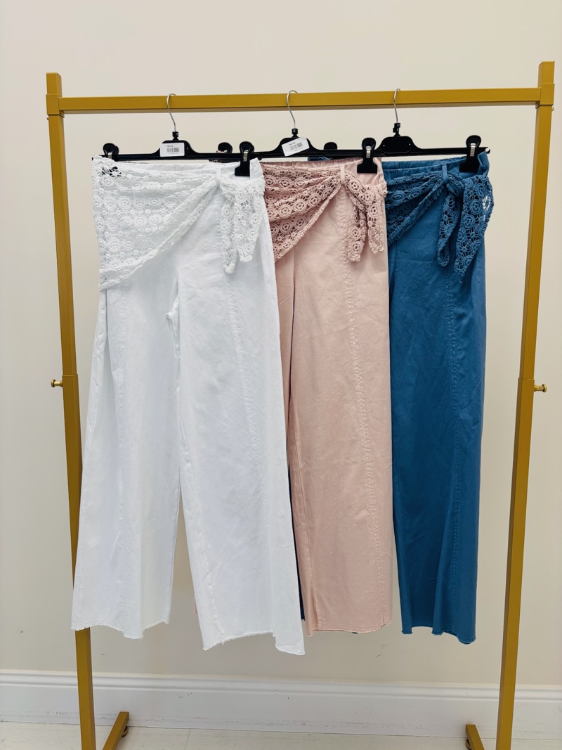 Découvrez notre pantalon élégant orné d’un foulard en dentelle. Parfait pour un look sophistiqué et unique.