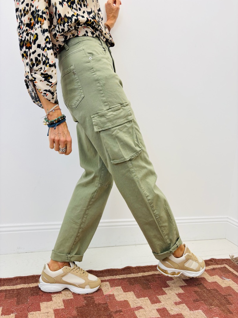 La teinte vert kaki, intemporelle et facile à associer, en fait une pièce clé pour des looks casual, urbains ou plus féminins selon le styling. La coupe droite allonge la silhouette et permet de le porter aussi bien retroussé avec des sneakers qu’avec des boots ou des sandales en saison estivale.