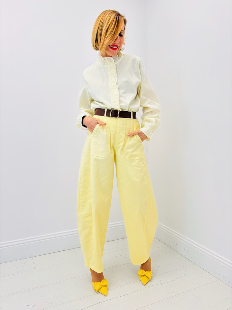 Pantalon Ceinturé Coupe Barrel – Allure Moderne et Structurée
