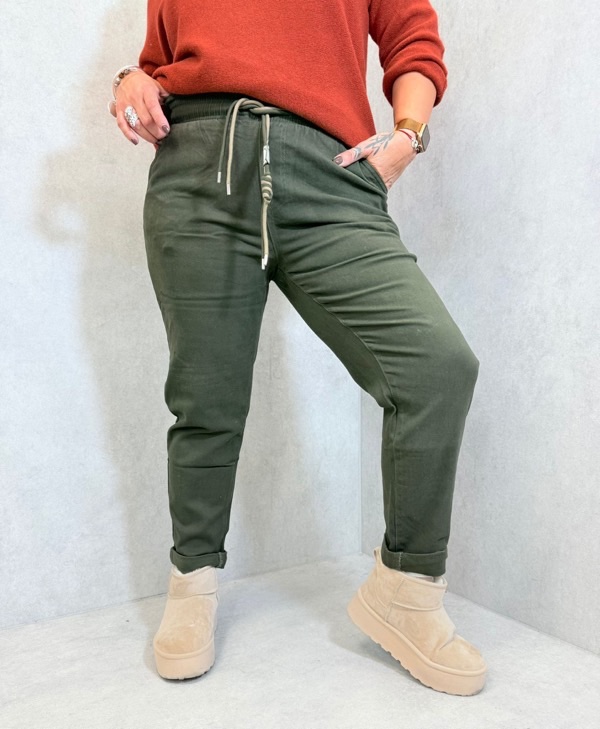 Alliez confort et modernité avec ce pantalon en coton stretch signé . Sa coupe décontractée et sa taille élastique à cordon permettent un ajustement parfait tout au long de la journée. Une pièce indispensable au quotidien, à la fois pratique, douce et stylée.