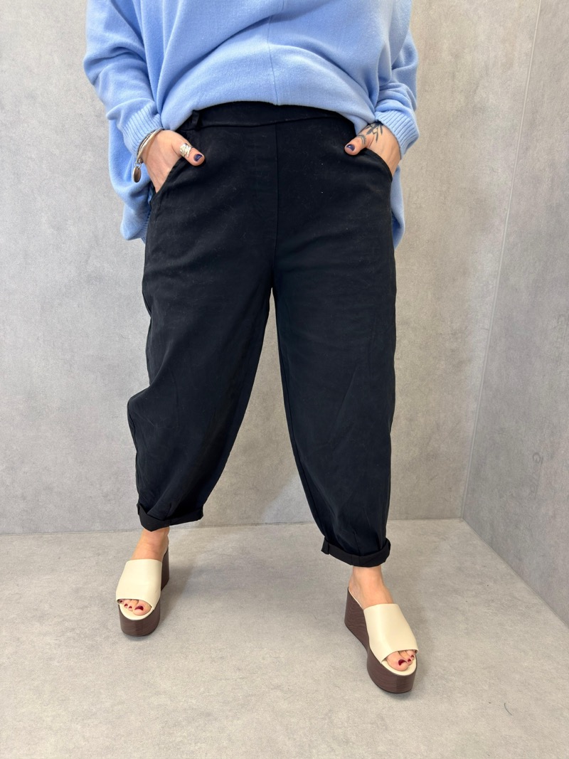 Confectionné dans une matière souple et agréable à porter, ce pantalon assure un tombé fluide qui accompagne les mouvements sans marquer les formes. La coupe ballon permet de créer du volume là où il faut, tout en affinant visuellement la jambe. C’est une coupe très appréciée pour son côté à la fois mode et confortable, parfaite pour un usage quotidien comme pour des looks plus travaillés.