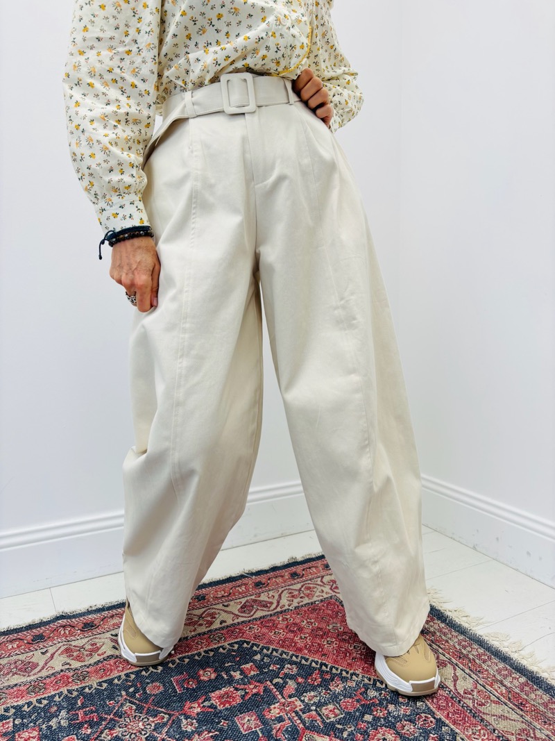 Pantalon Coupe Barrel Taille Haute Ceinturé
