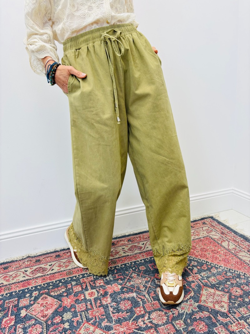 Pantalon En Toile De Jean Avec Détails Dentelle