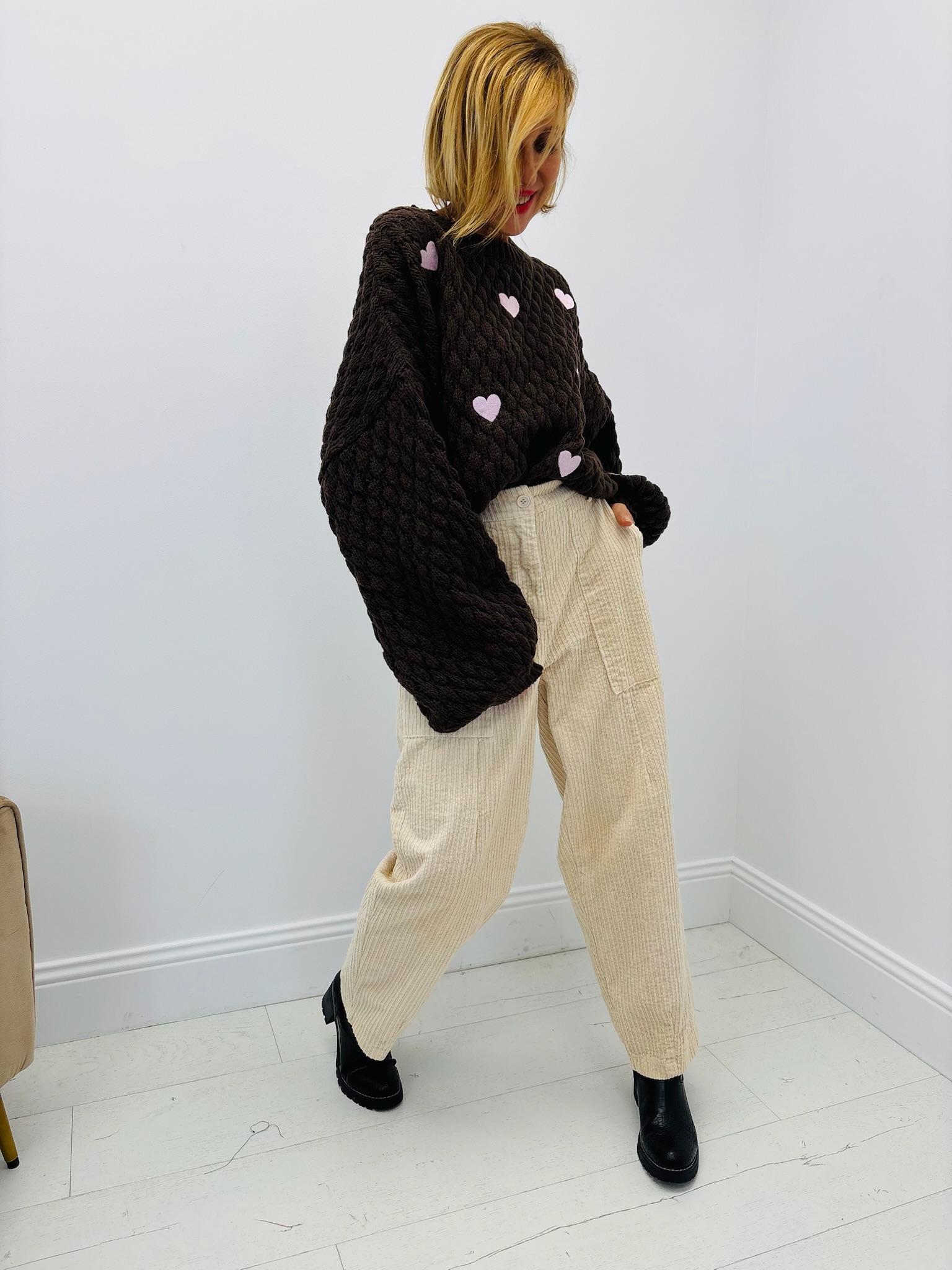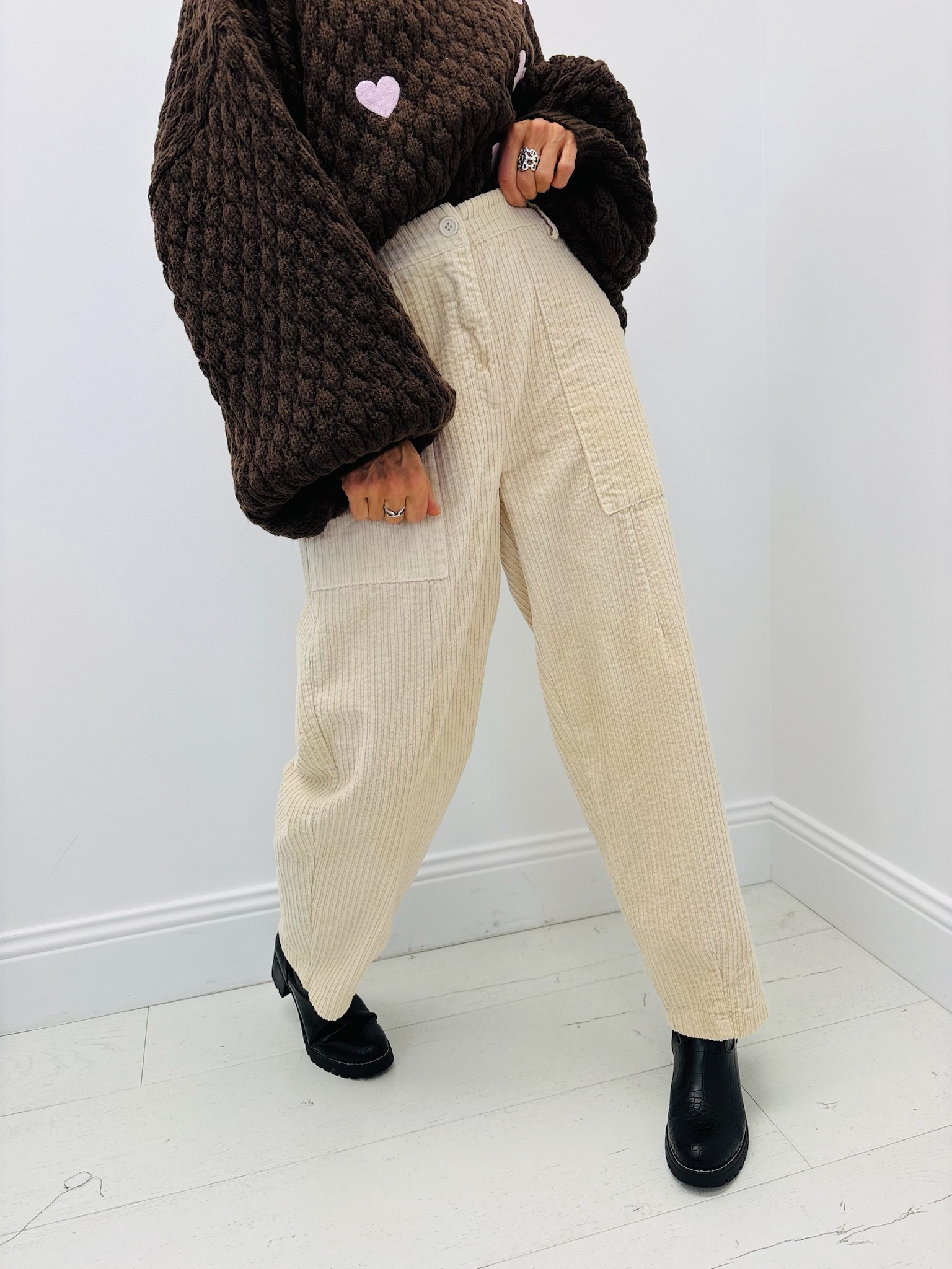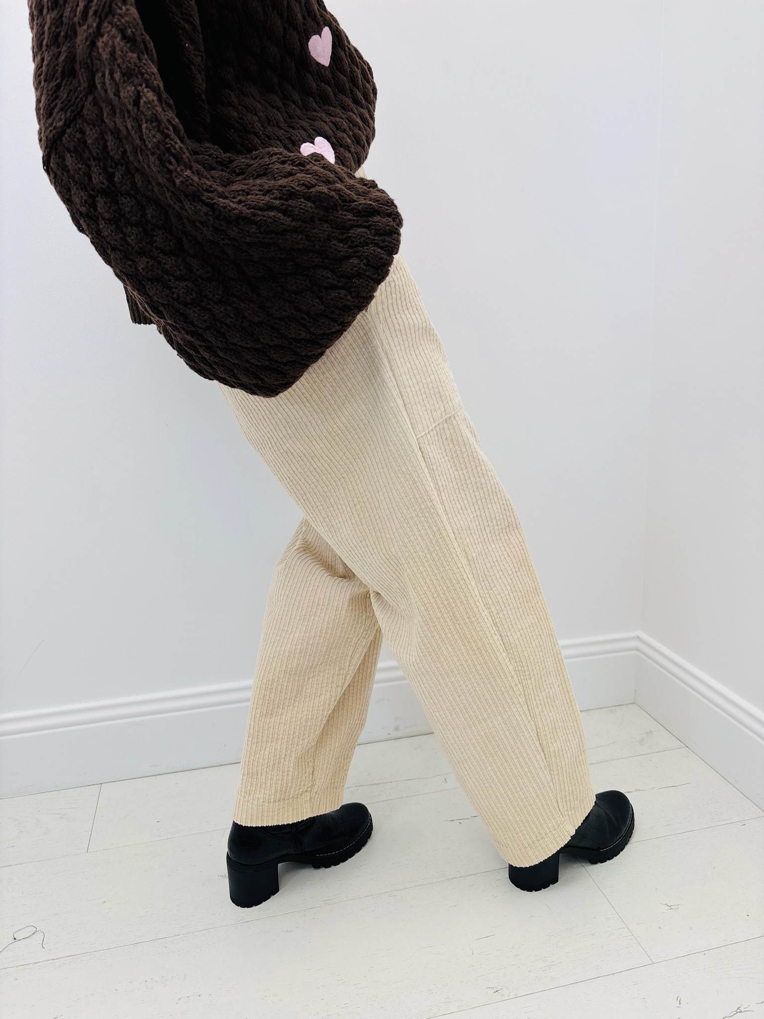 Un pantalon doux, confortable et tendance qui revisite le velours côtelé dans une coupe moderne. Sa taille haute et sa jambe large légèrement structurée assurent une silhouette actuelle, entre style casual et allure chic.