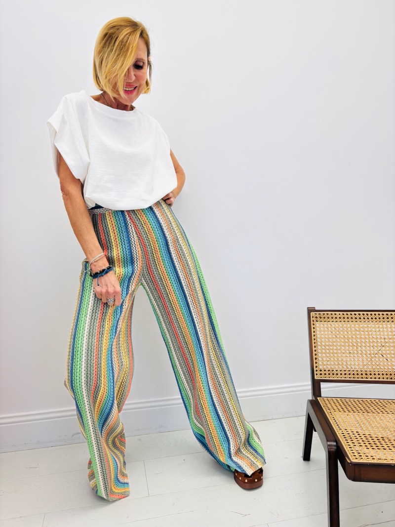 Découvrez notre pantalon inspiré du célèbre style Missoni, alliant élégance et confort pour une allure chic et décontractée. Ce vêtement est parfait pour toutes vos sorties estivales.