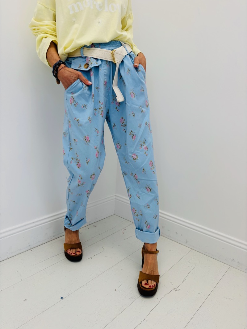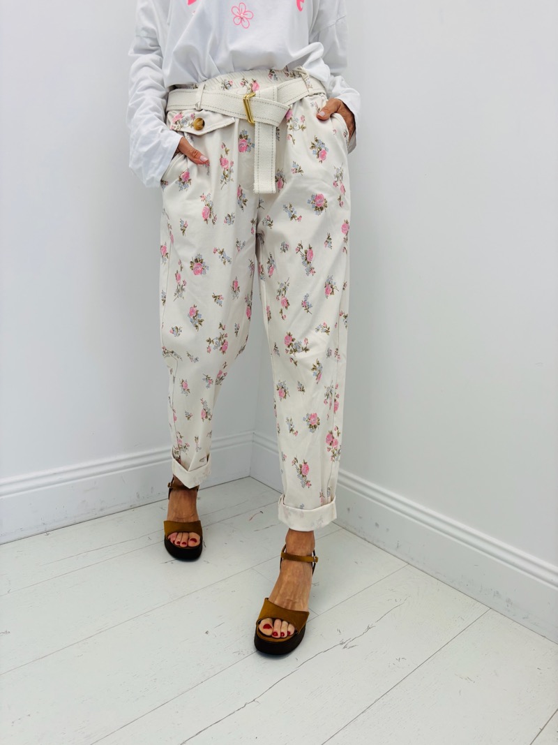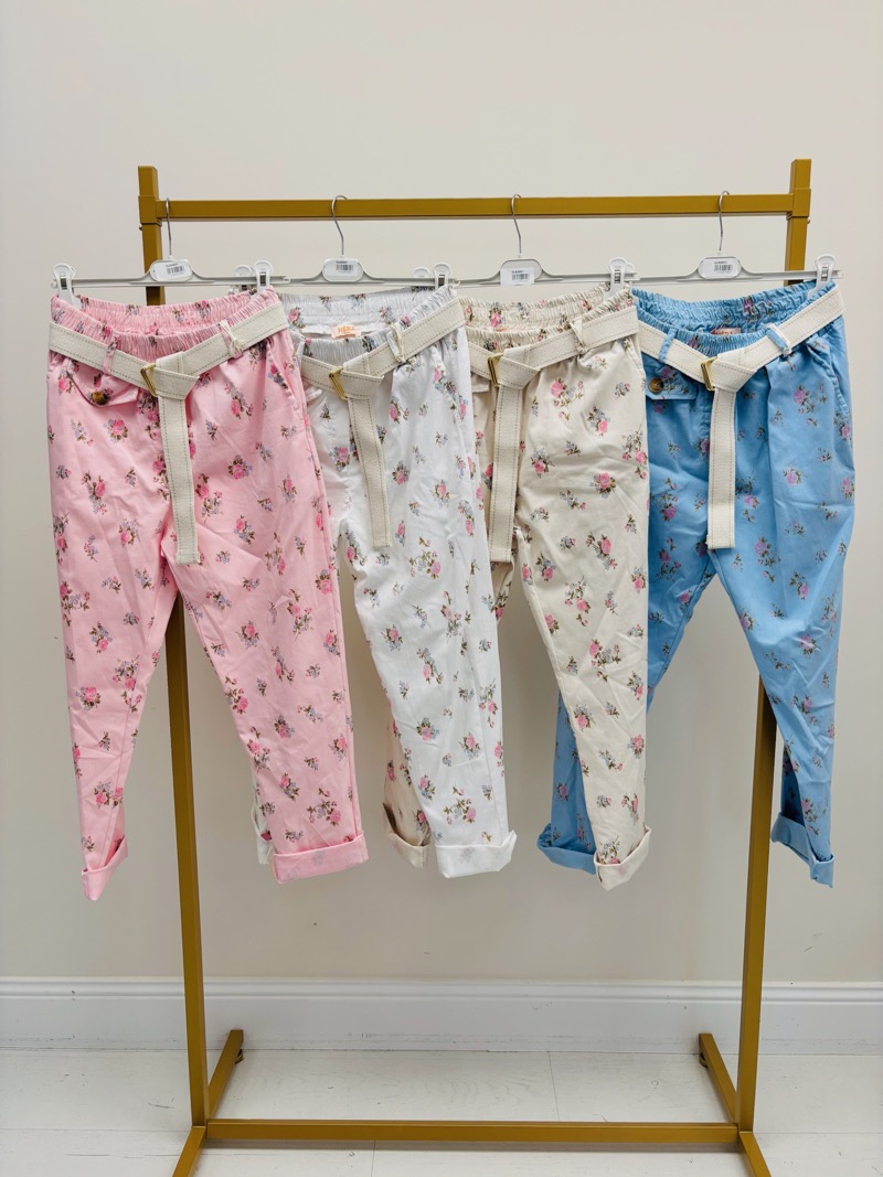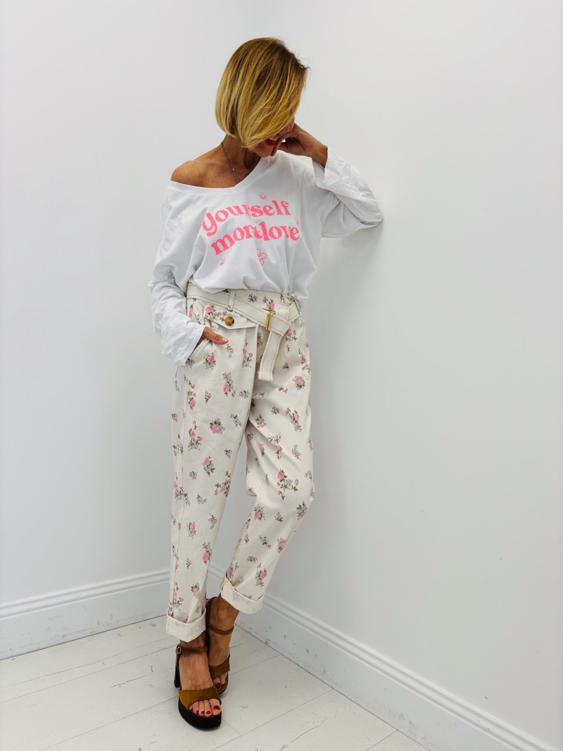 Pantalon Fleuri Taille Haute Ceinture Esprit Romantique Chic