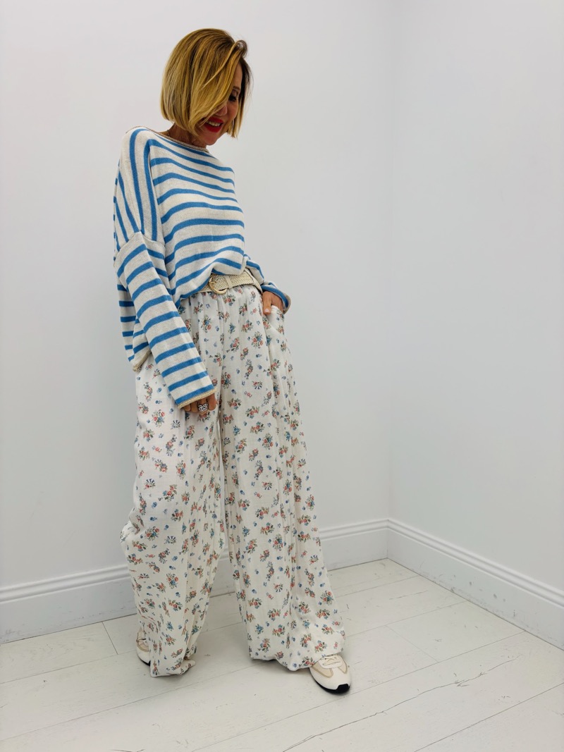 Laissez-vous séduire par ce pantalon fluide imprimé liberty, une pièce incontournable pour une silhouette à la fois féminine et décontractée. Son imprimé floral délicat apporte une touche romantique et intemporelle, parfaite pour la saison printemps/été.